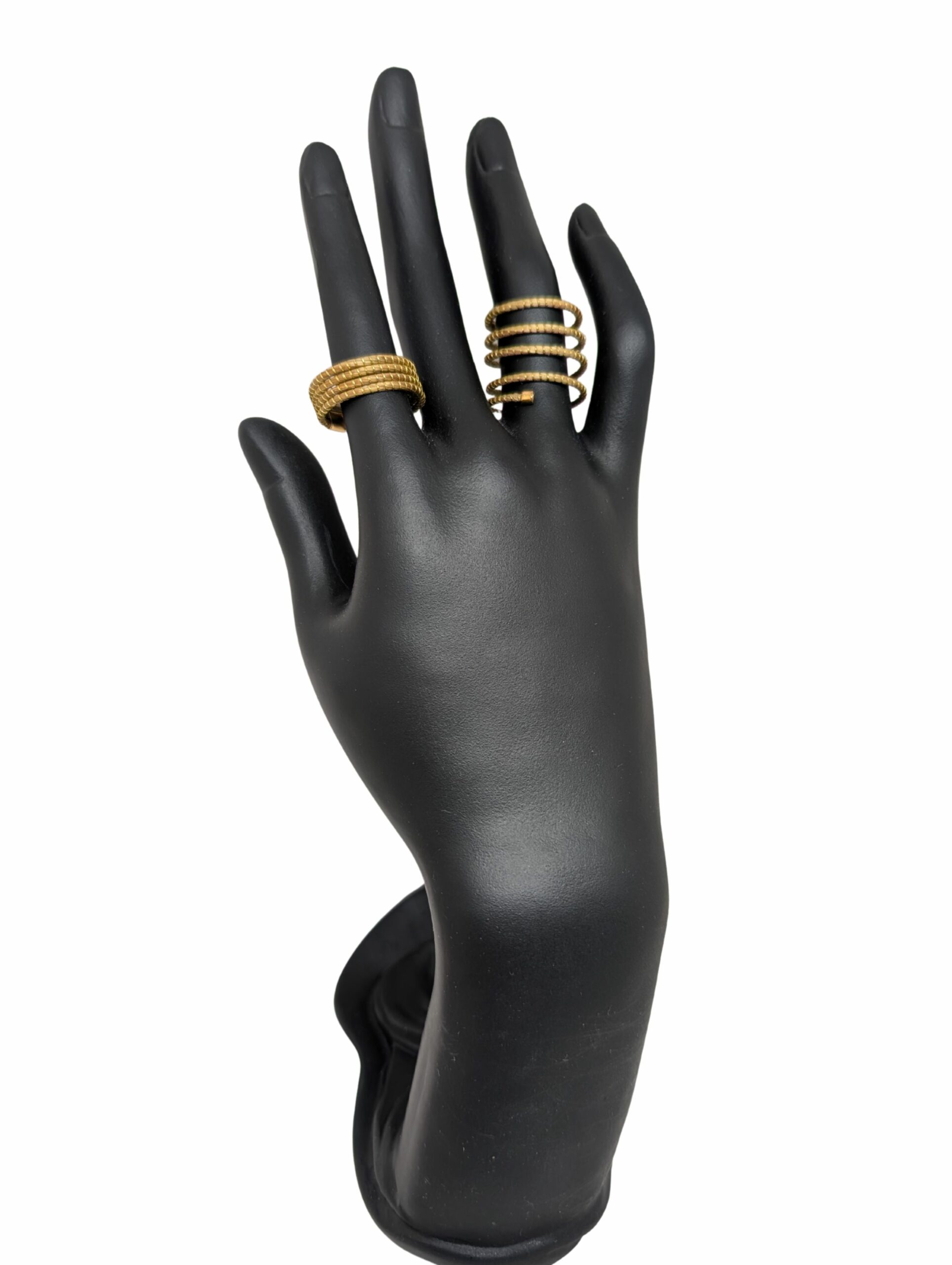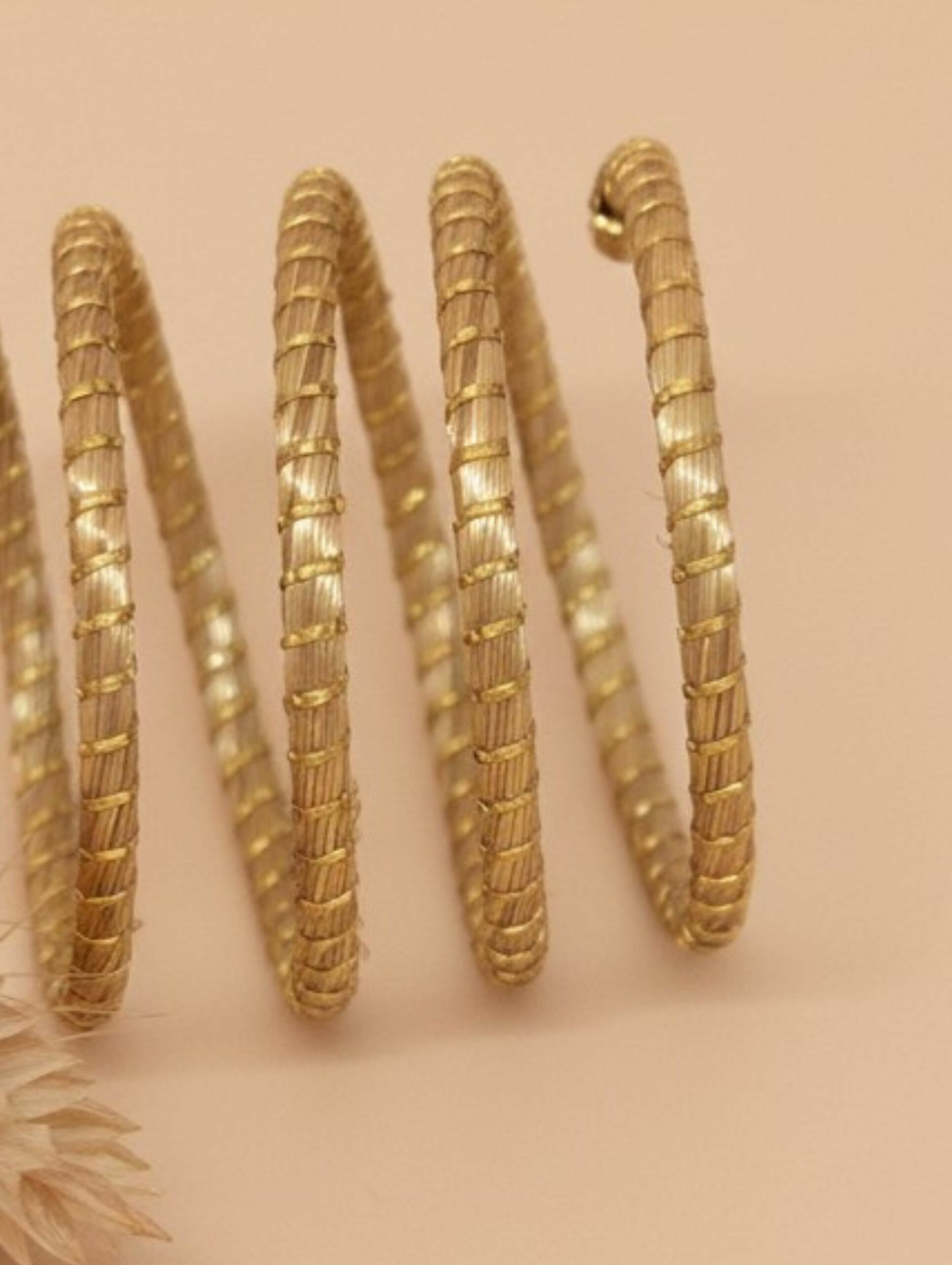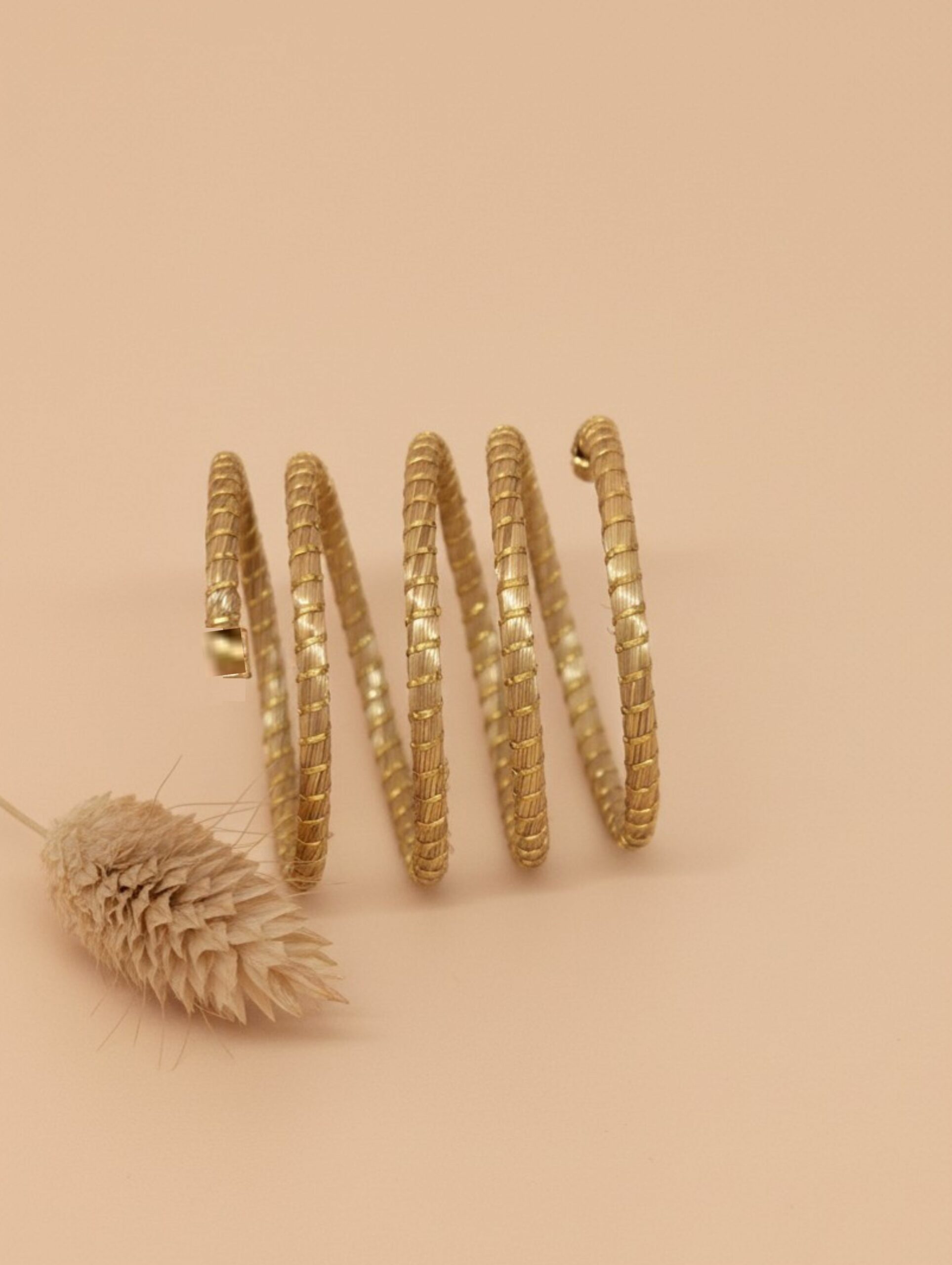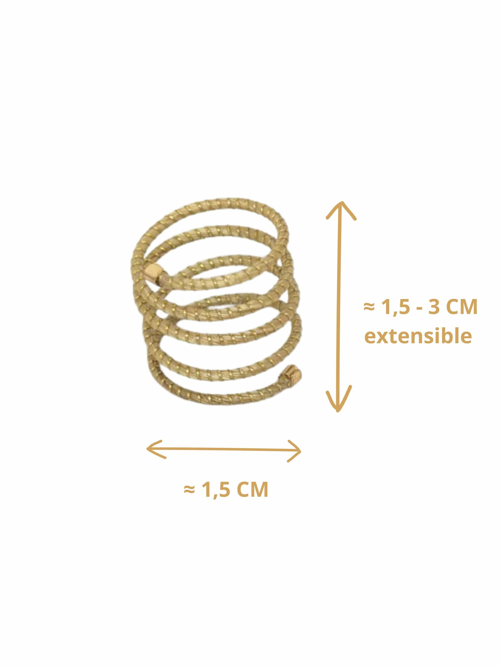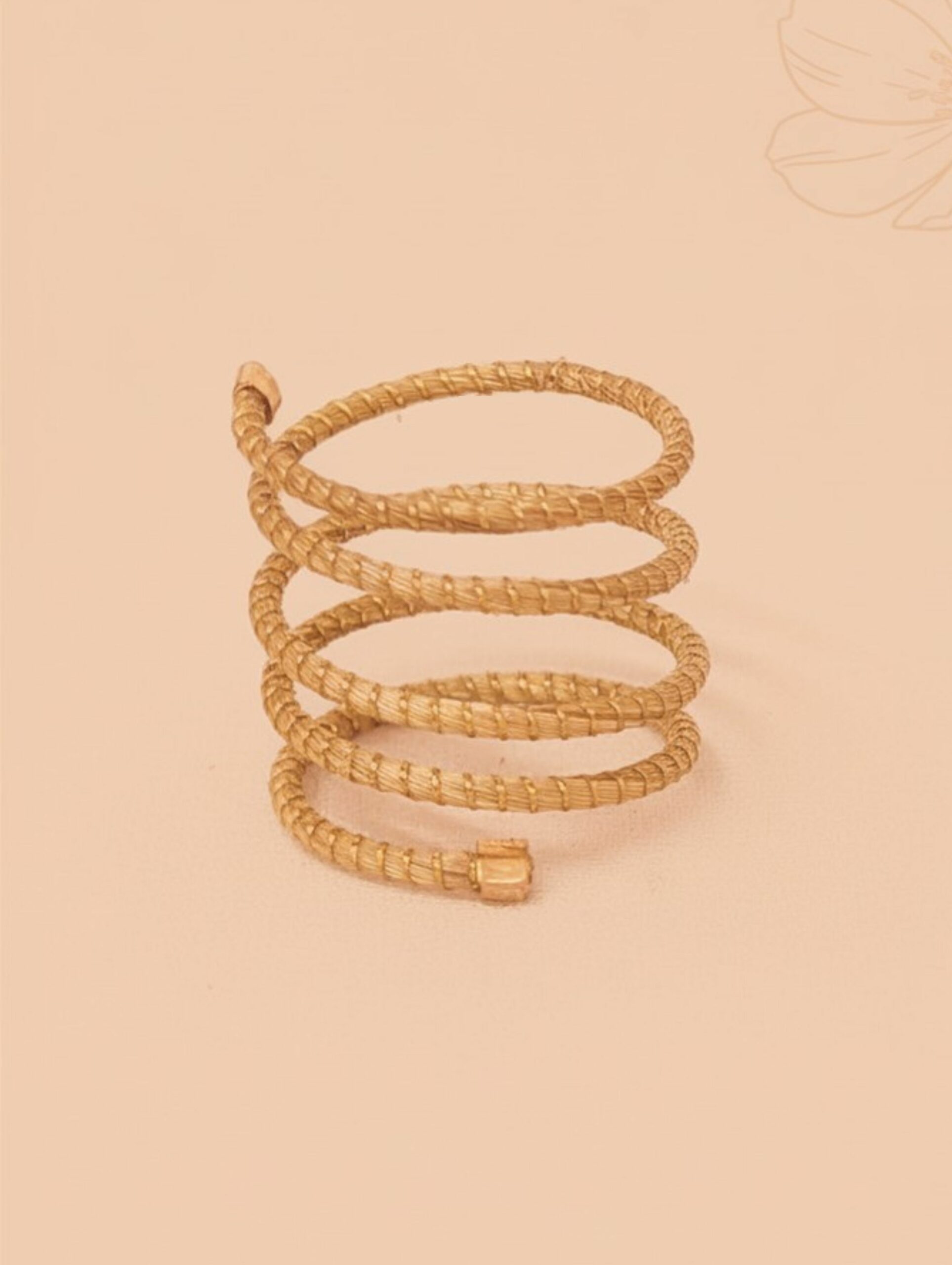 Este anillo de oro vegetal SAHARA, hecho a mano con hilos de capim dourado, ofrece un estilo a la par moderno y original. Es una biojoya elegante con un diseño creativo y luminoso, recordando el color del famoso desierto del SAHARA. Este lujoso anillo artesanal se podría llevar tanto en tu jornada laboral como en cualquier plan que te surgiese posteriomente. Su diseño único, con una fina línea dorada dibujando 5 vueltas alrededor del dedo como una serpiente, símboliza energía y fortaleza. Combina este anillo de oro vegetal SAHARA con otras biojoyas de capim dorado y ¡roba todas las miradas!. Atemporal, esta biojoya es una inversión de estilo a largo plazo.