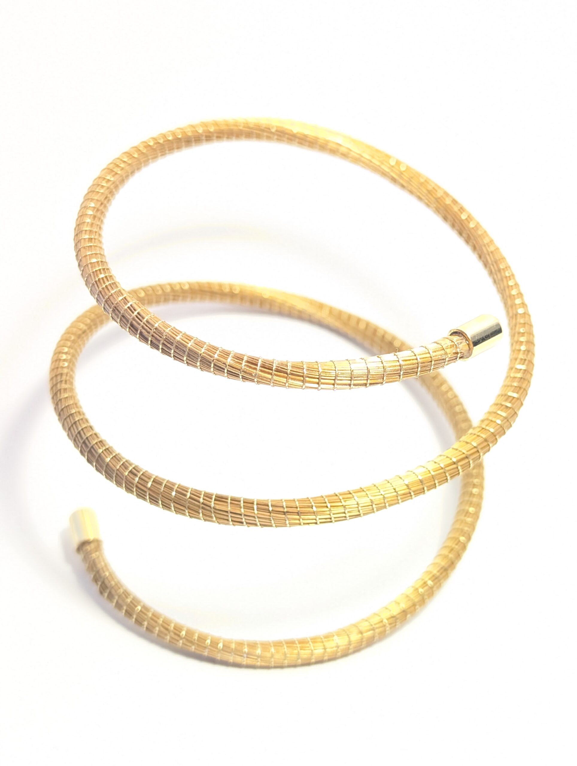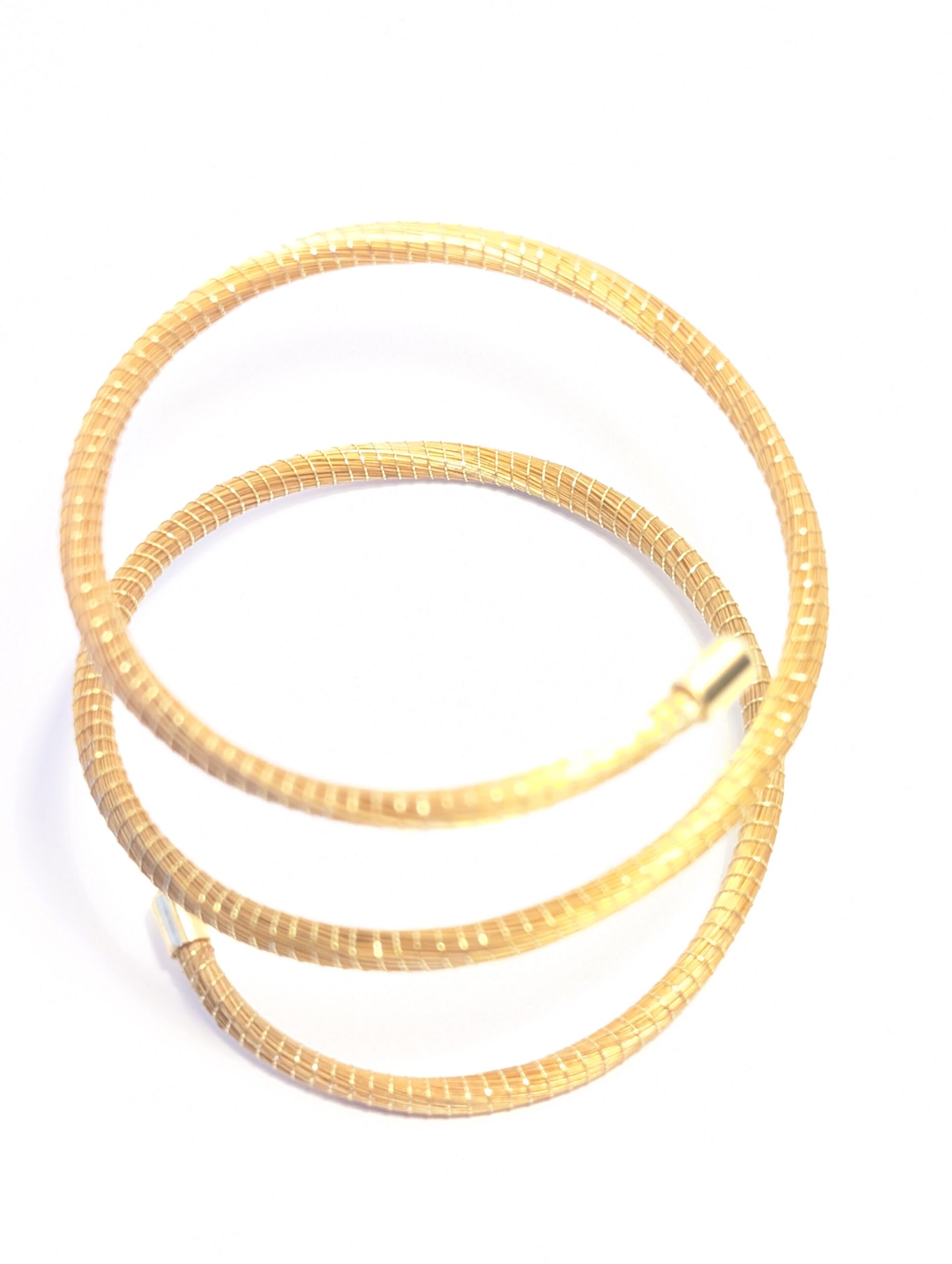 Este brazalete de oro vegetal SAHARA, hecho a mano con hilos de capim dourado, ofrece un estilo a la par moderno y original. Es una biojoya elegante con un diseño creativo y luminoso, recordando el color del famoso desierto del SAHARA. Este lujoso brazalete artesanal se podría llevar tanto en tu jornada laboral como en cualquier plan que te surgiese posteriomente. Su diseño único, con una fina línea dorada dibujando varias vueltas alrededor del brazo como una serpiente, simboliza energía y fortaleza. Combina este brazalete de oro vegetal SAHARA con otras biojoyas de capim dorado y ¡roba todas las miradas!. Atemporal, esta biojoya es una inversión de estilo a largo plazo.