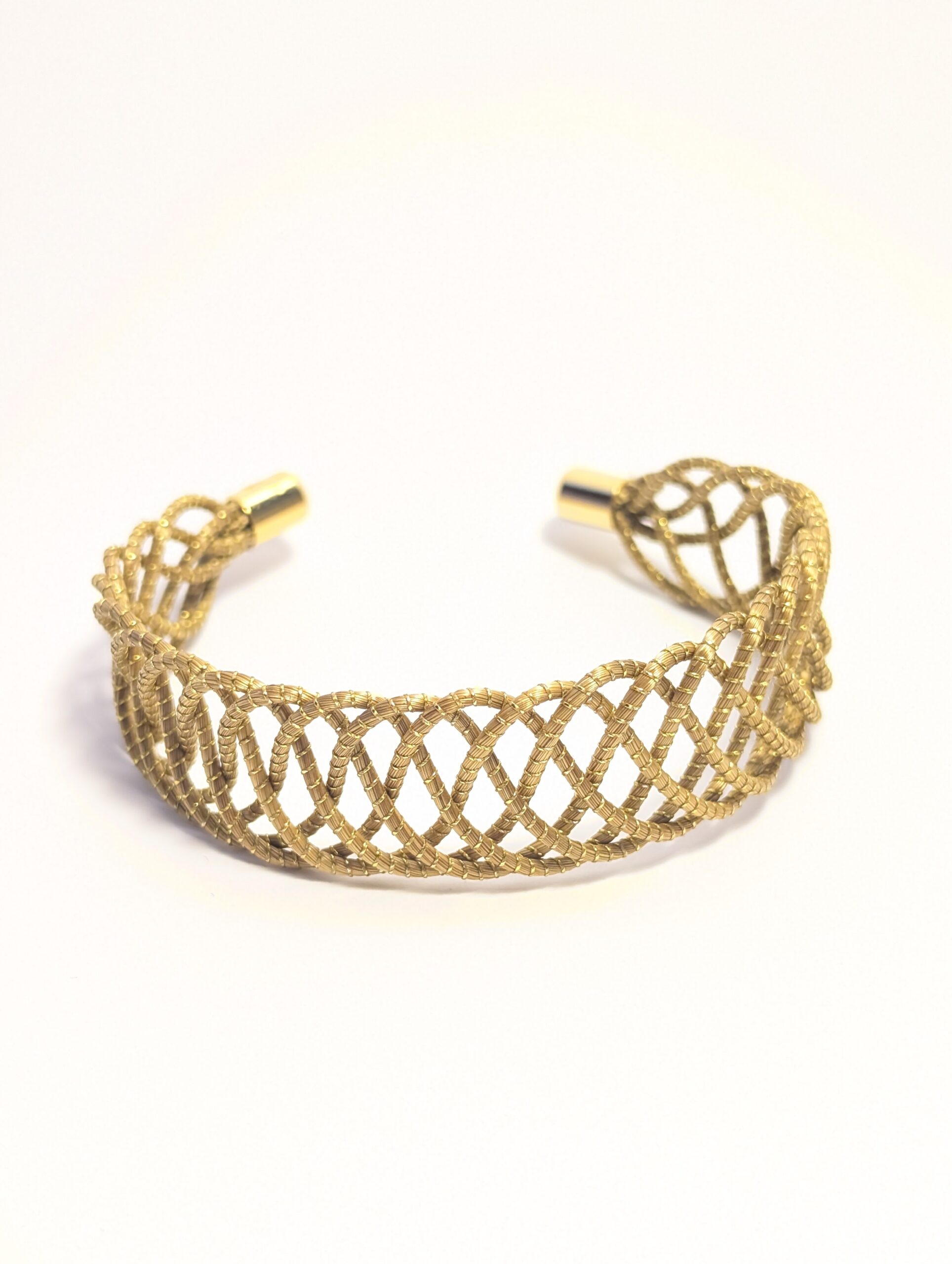 El brazalete de oro vegetal YUCATAN está hecho a mano por artesanos brasileños. La compra de esta biojoya ecológica contribuye al desarrollo económico y sostenible de la zona del desierto de Jalapão (Tocantins – Brasil).