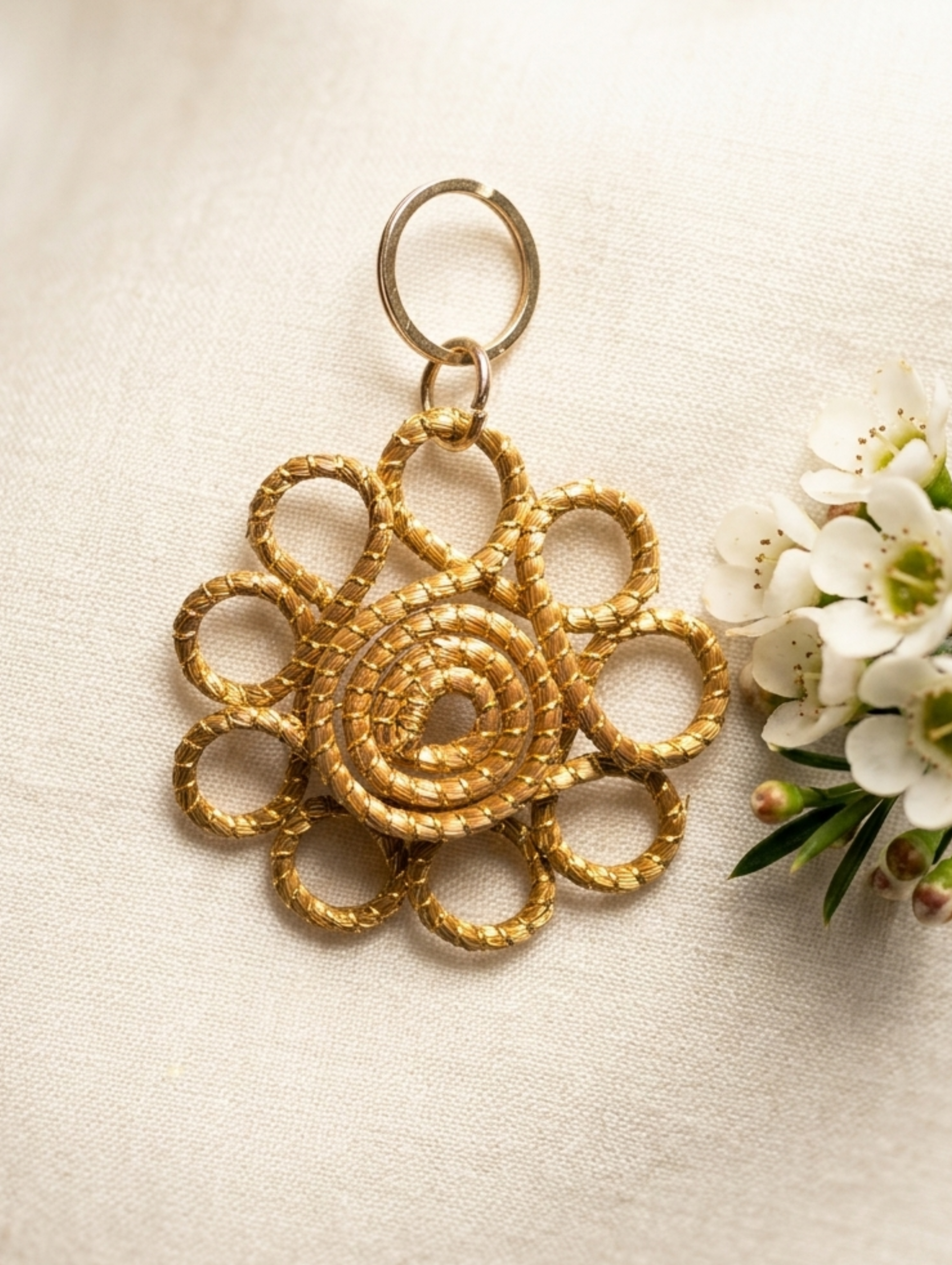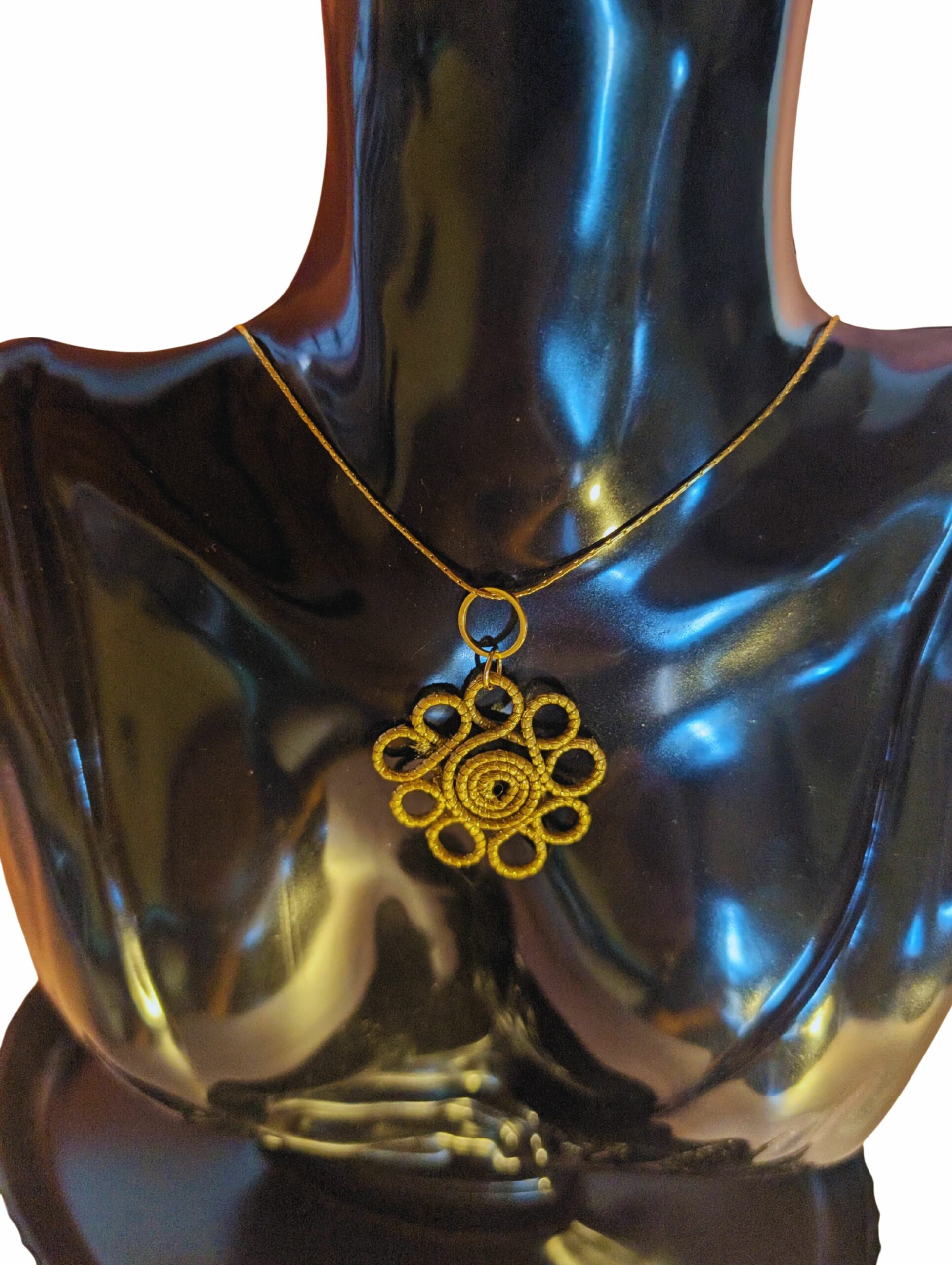 Los Capimix son colgantes multiusos de oro vegetal, elaborados a mano con capim dourado, una planta brasileña conocida por su brillo natural.