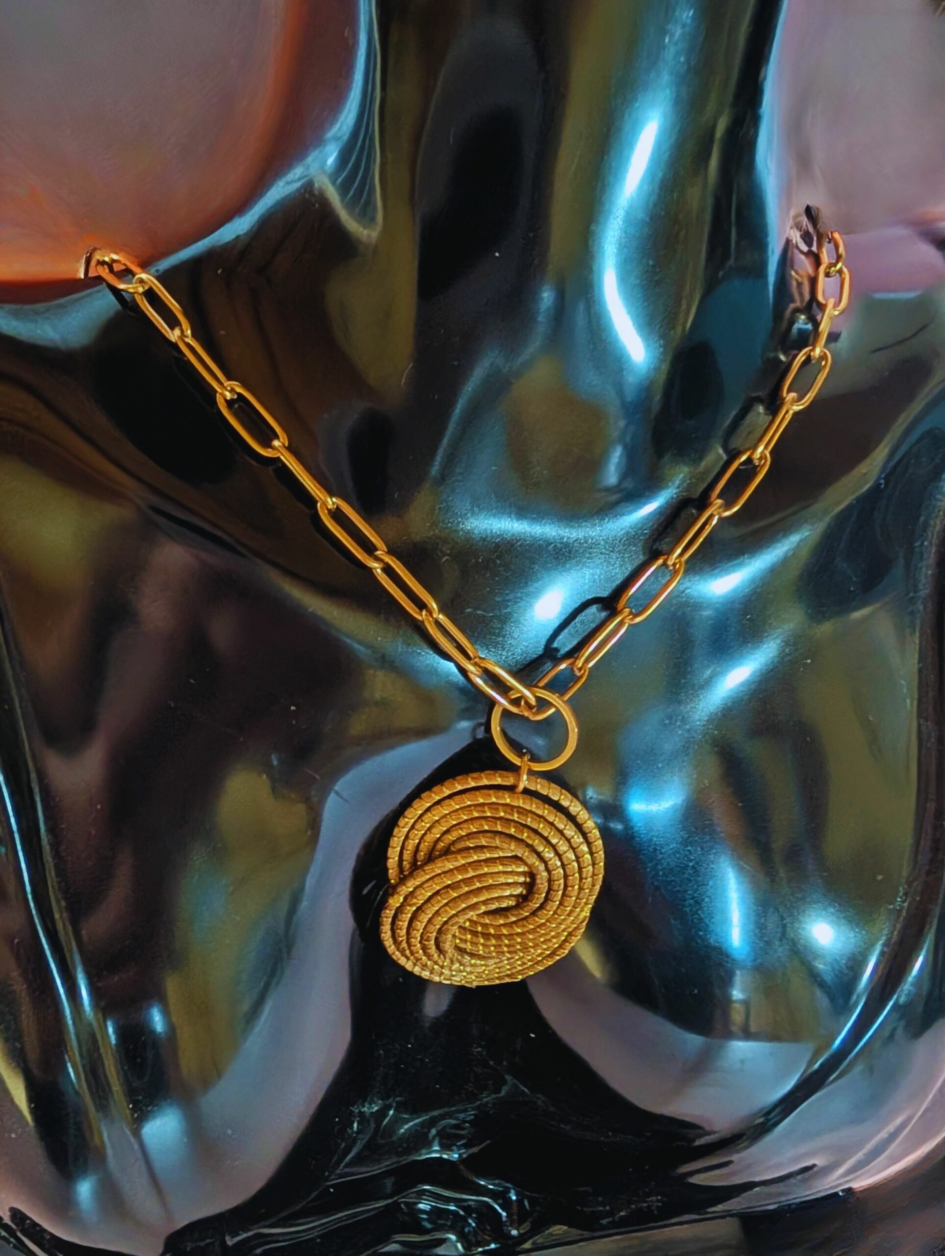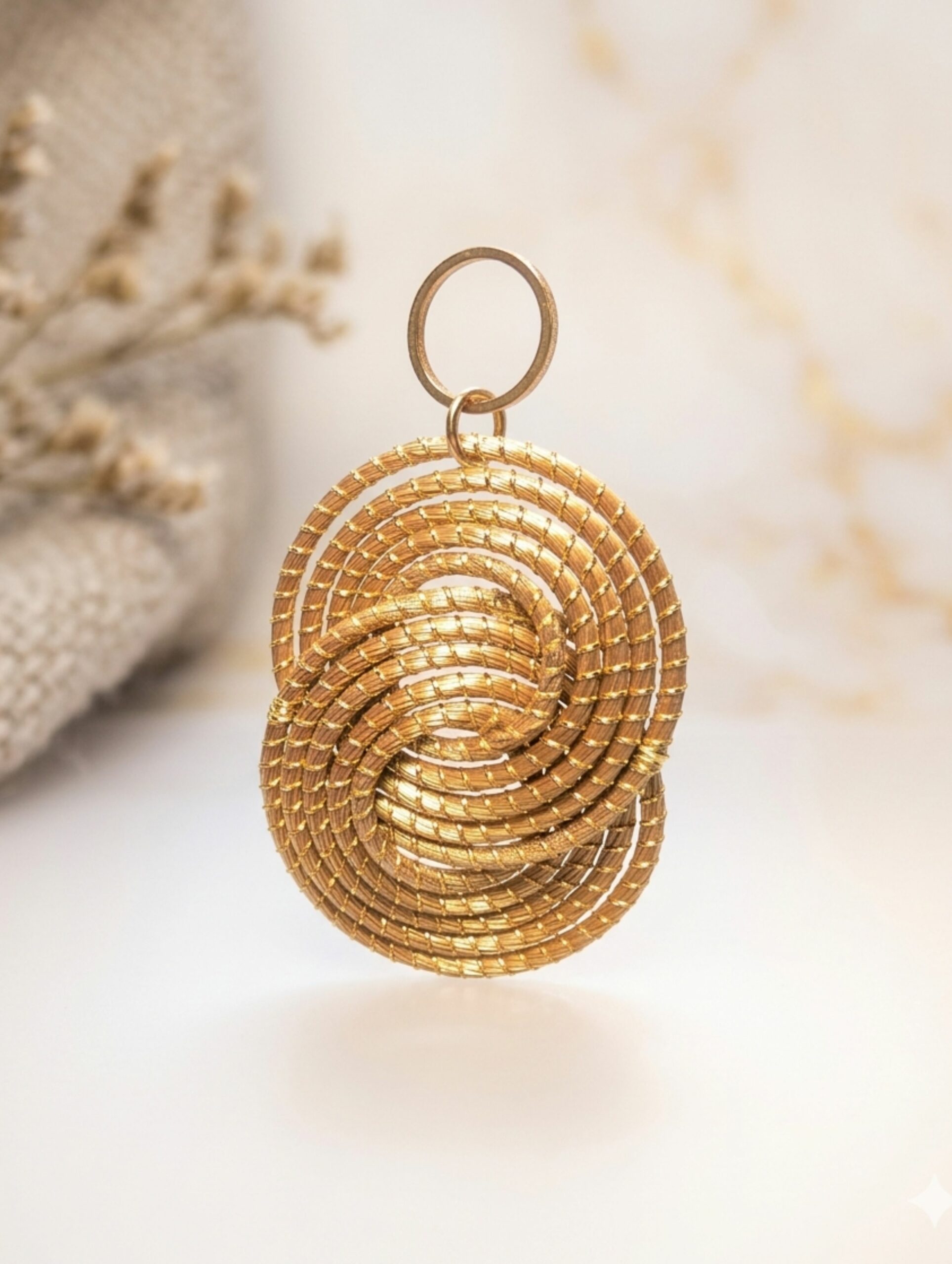 Los Capimix son colgantes multiusos de oro vegetal, elaborados a mano con capim dourado, una planta brasileña conocida por su brillo natural.