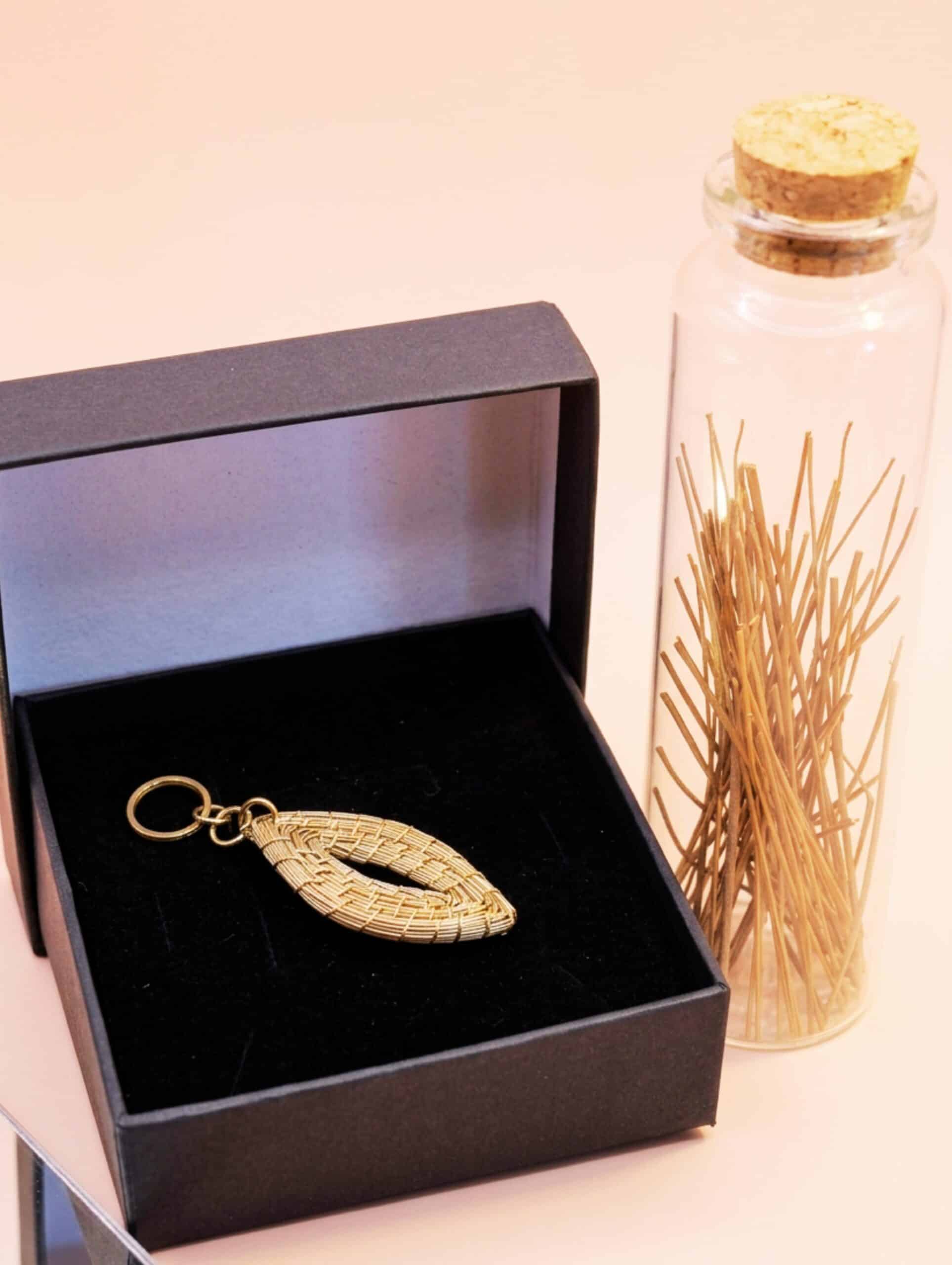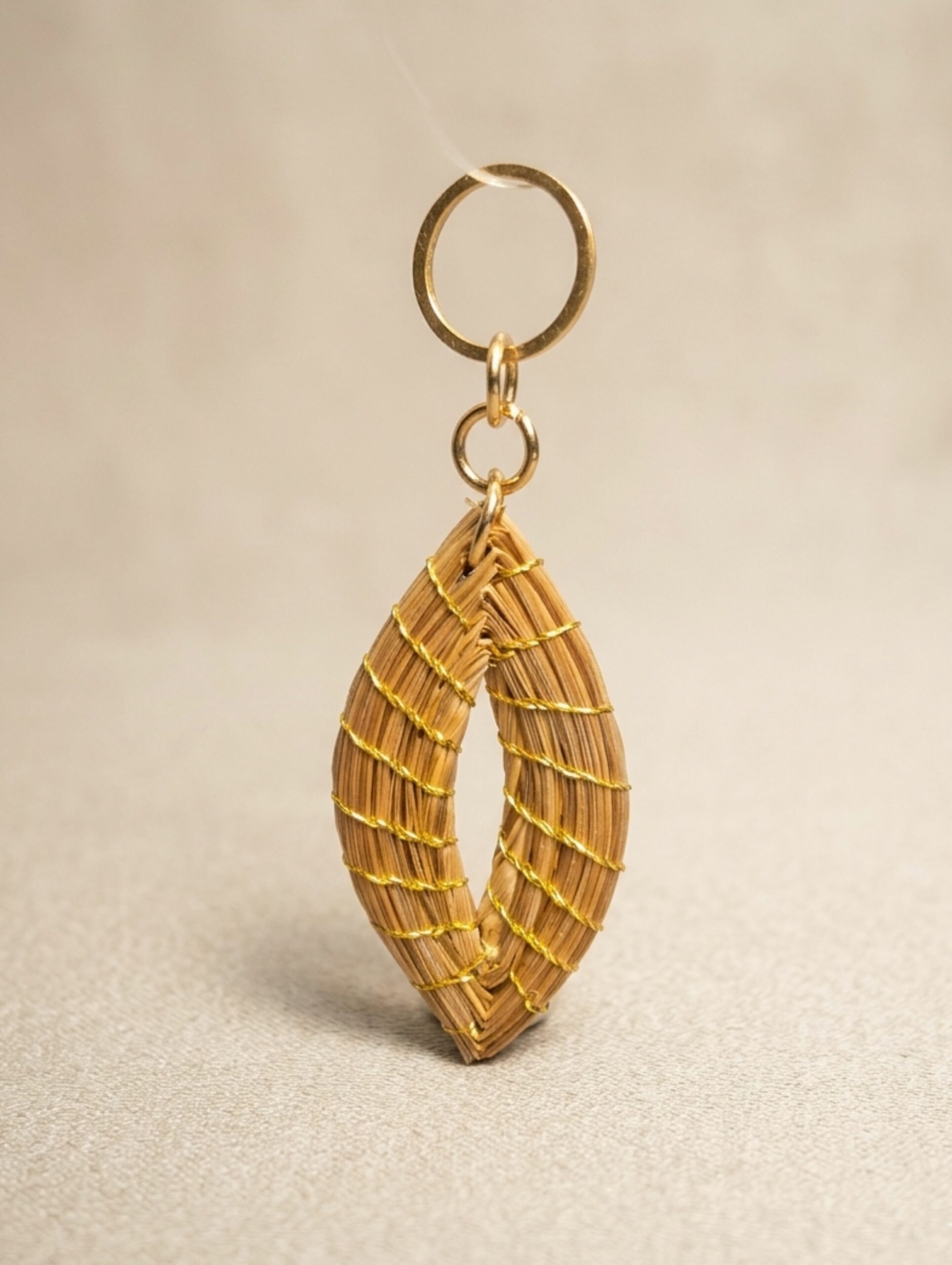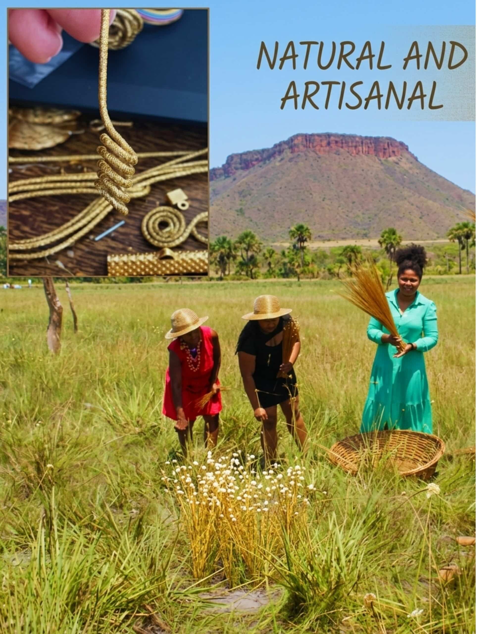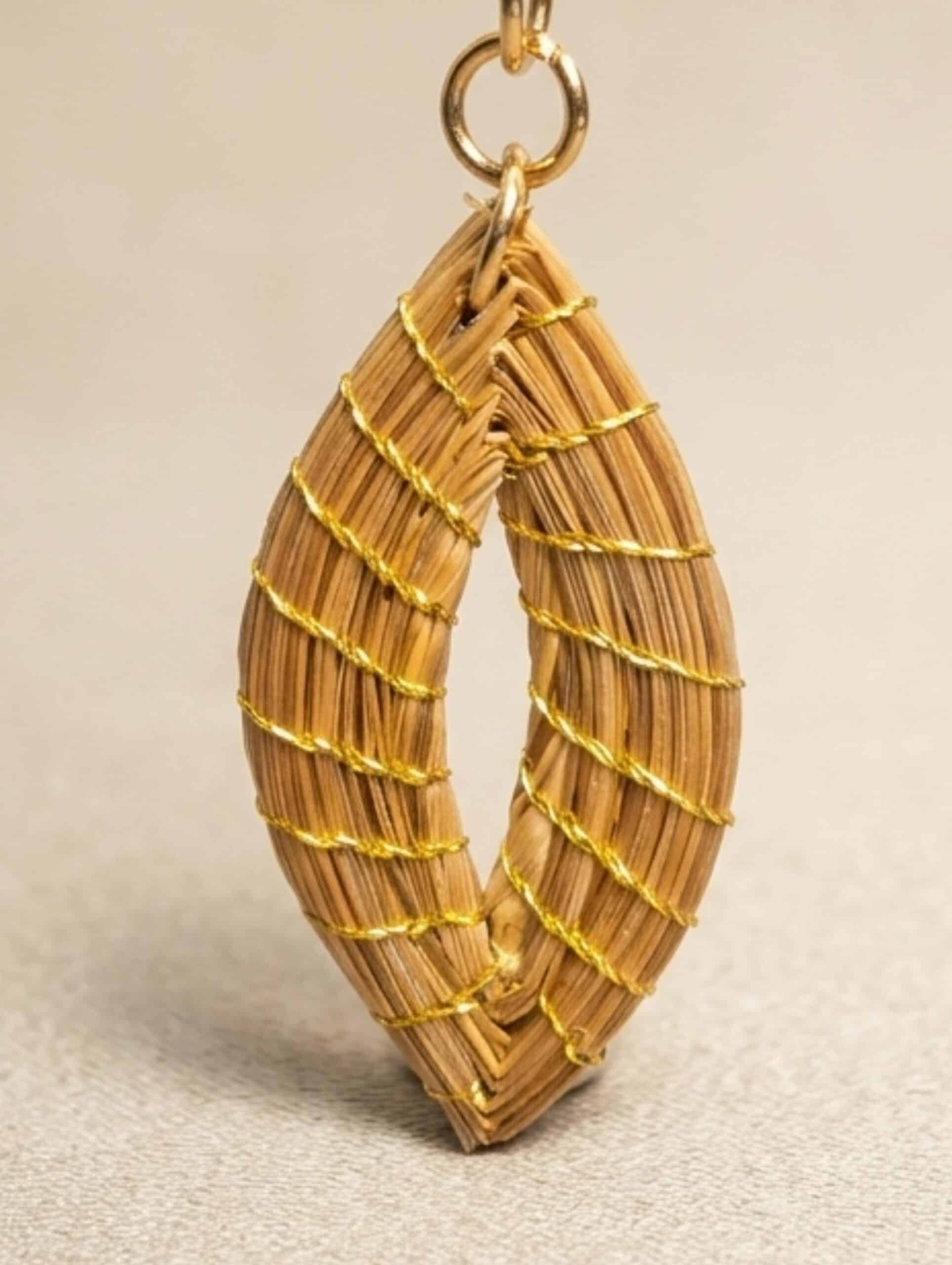 Los Capimix son colgantes multiusos de oro vegetal, elaborados a mano con capim dourado, una planta brasileña conocida por su brillo natural.