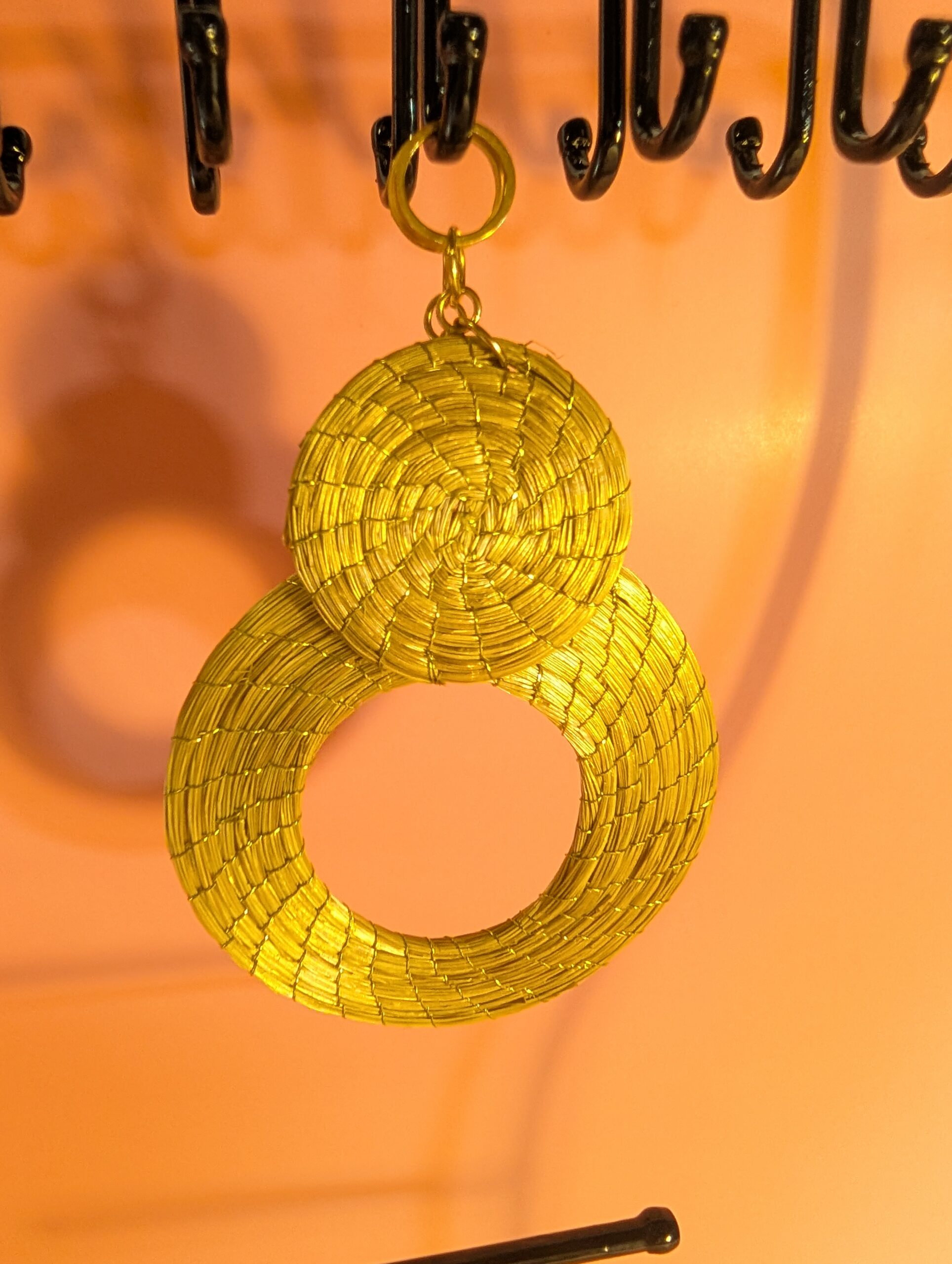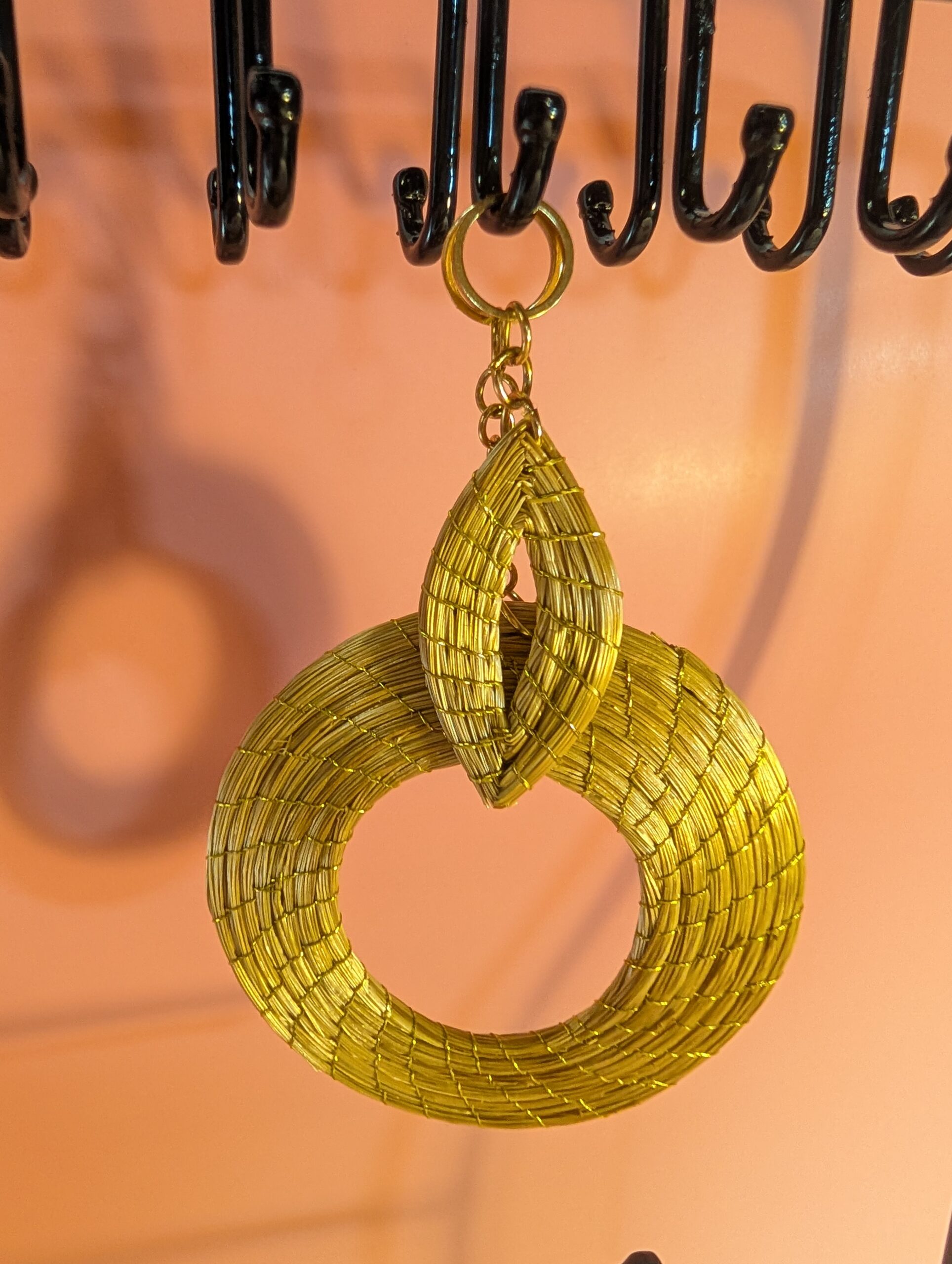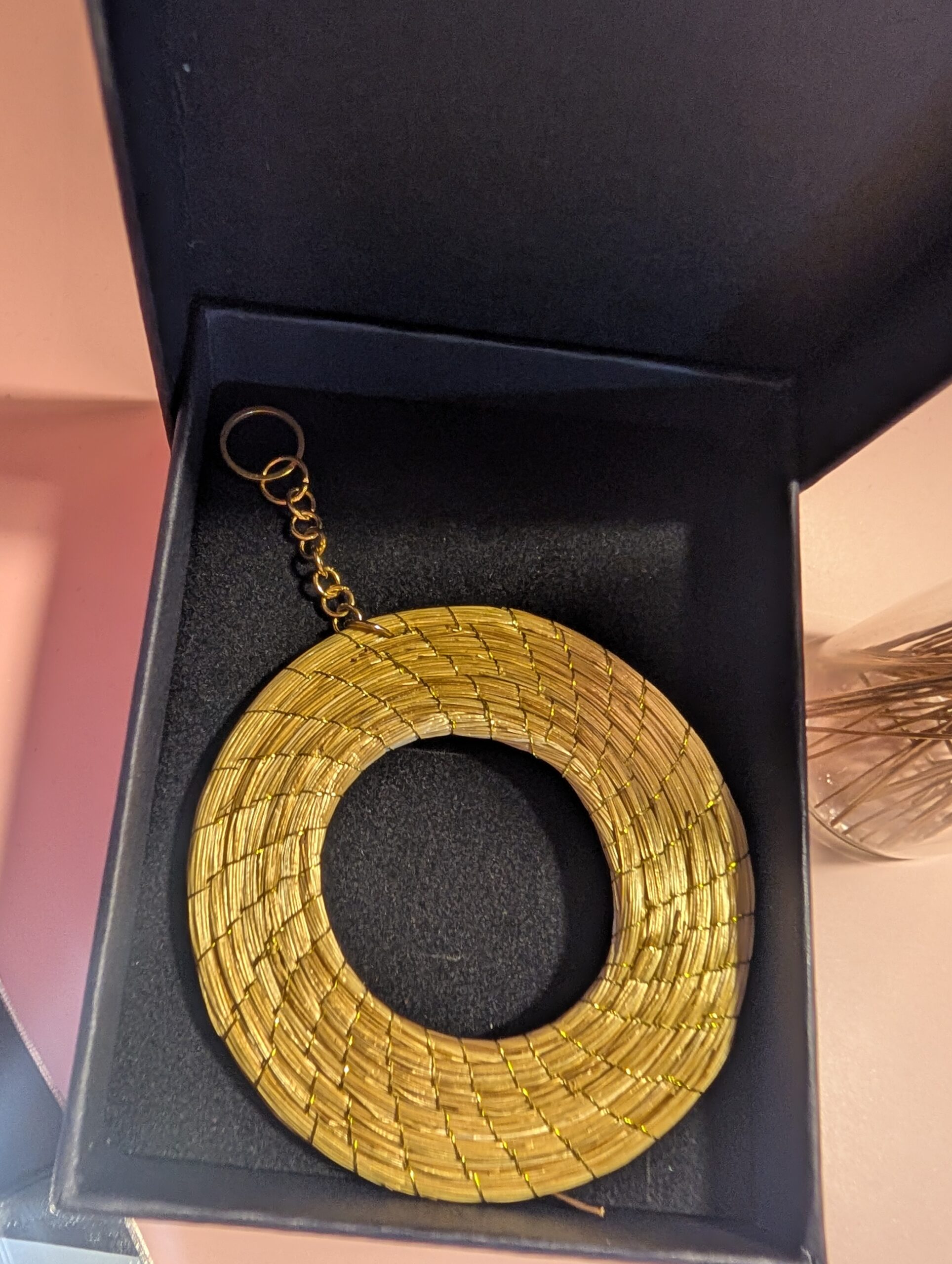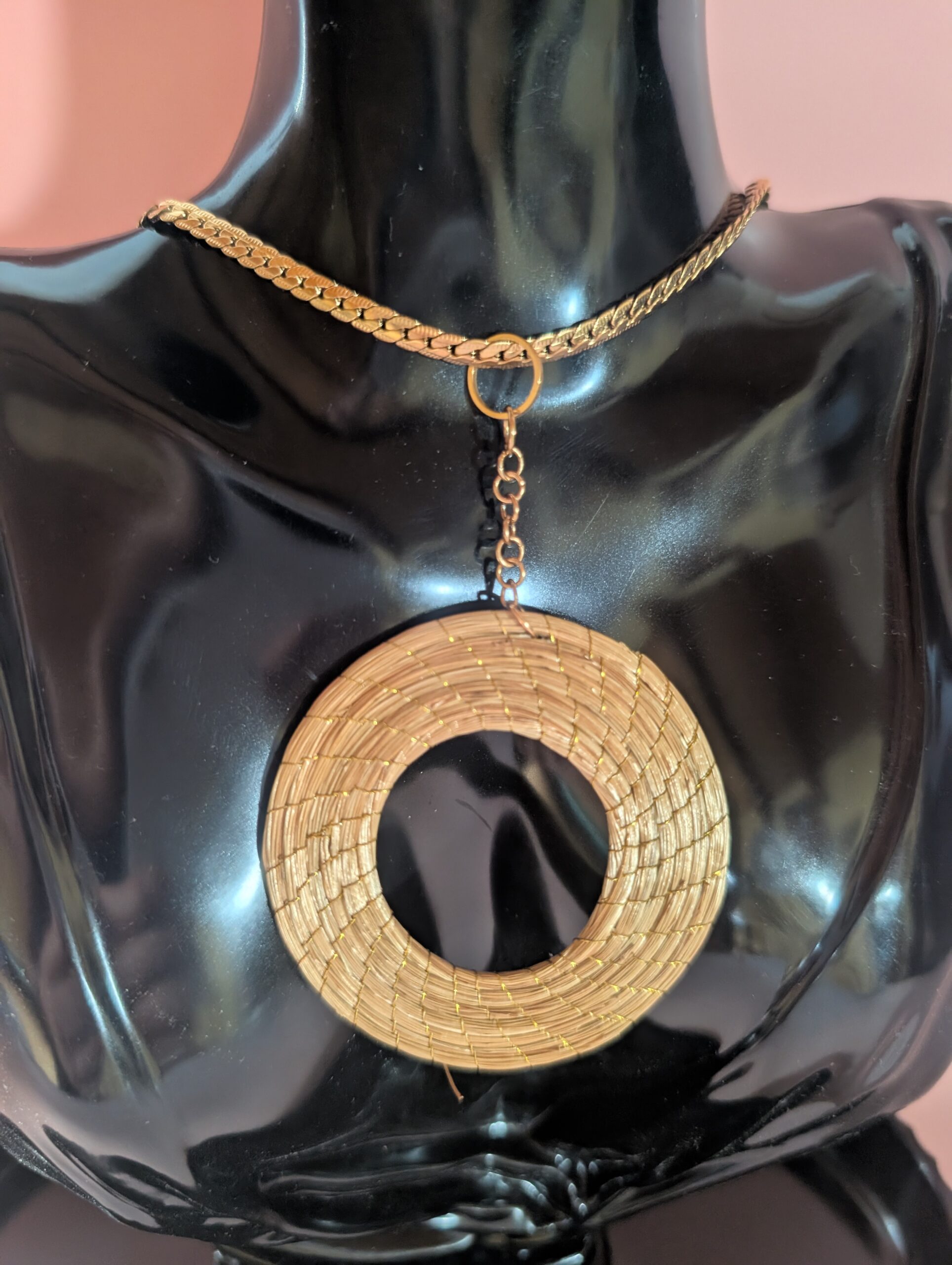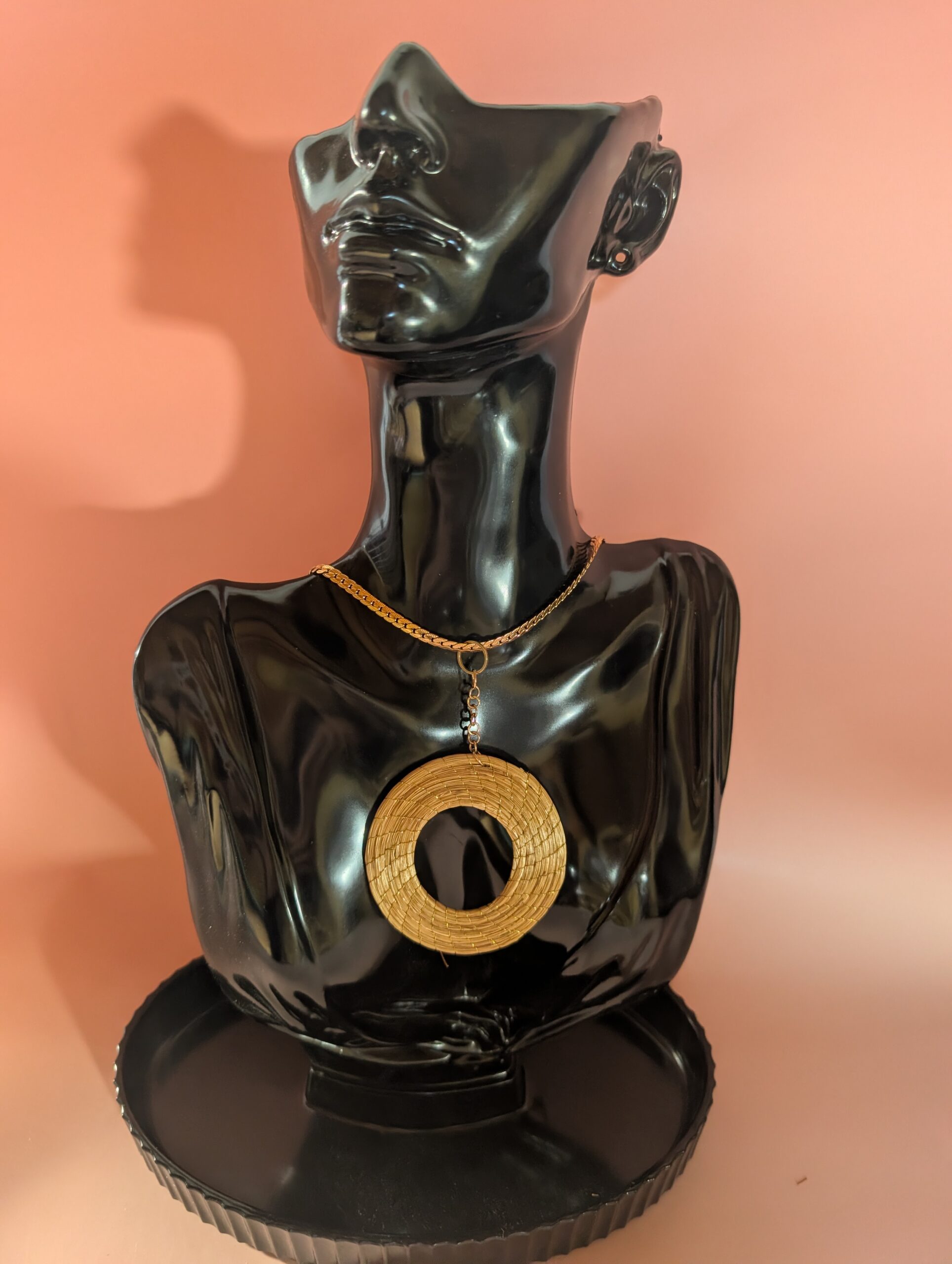 Los Capimix son colgantes multiusos de oro vegetal, elaborados a mano con capim dourado, una planta brasileña conocida por su brillo natural.