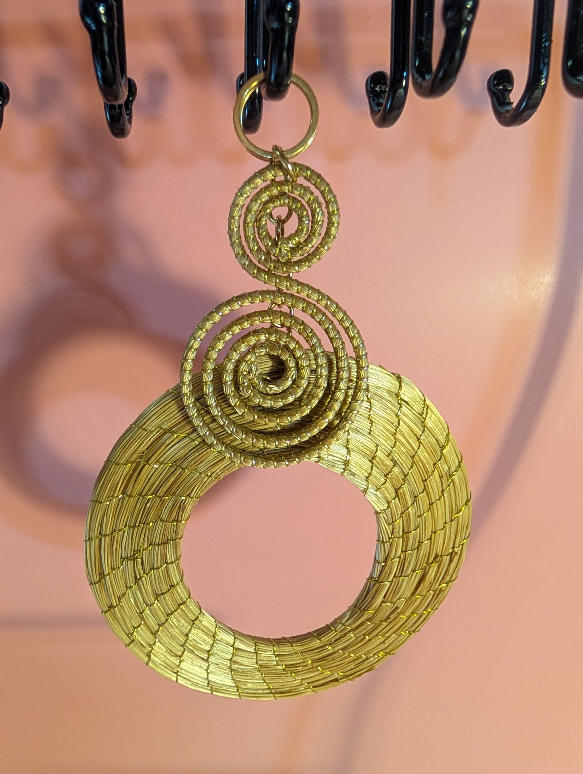 Son colgantes dorados de capim dorado, el oro vegetal brasileño. Joyería natural hecha 100% a mano con la famosa hierba dorada (Brasil).