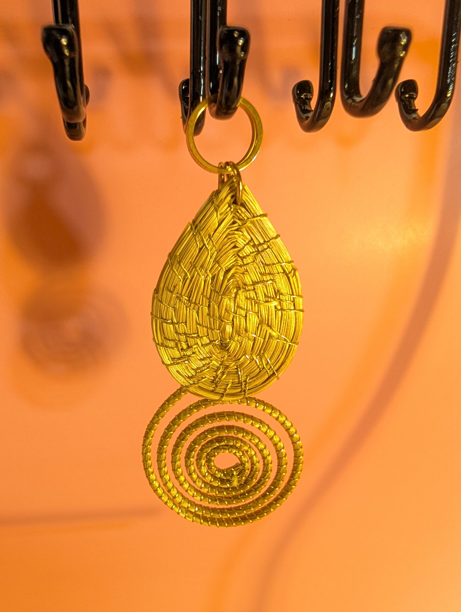 Son colgantes dorados de capim dorado, el oro vegetal brasileño. Joyería natural hecha 100% a mano con la famosa hierba dorada (Brasil).
