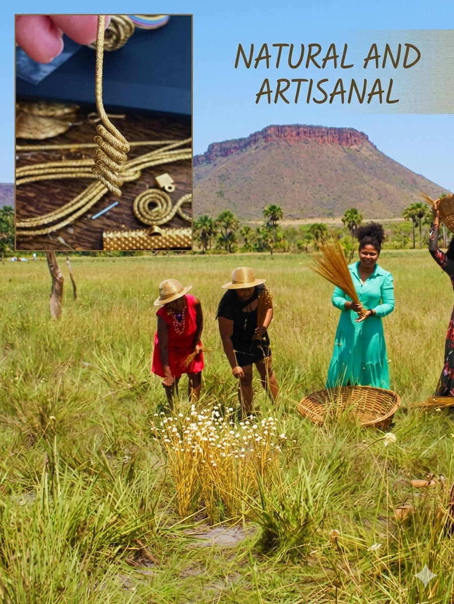 - Capim dourado (oro vegetal) — fibra natural, sostenible y luminosa.