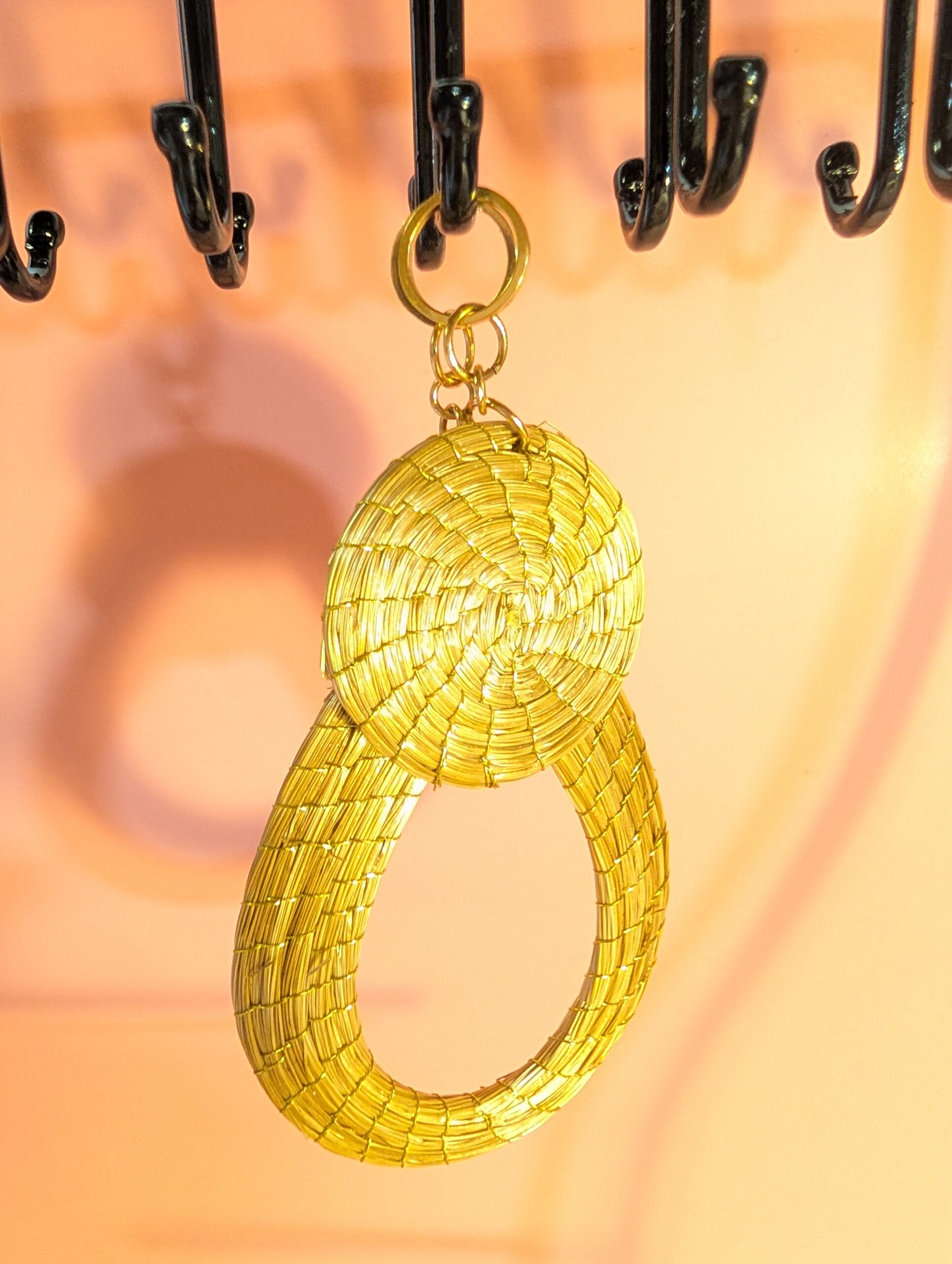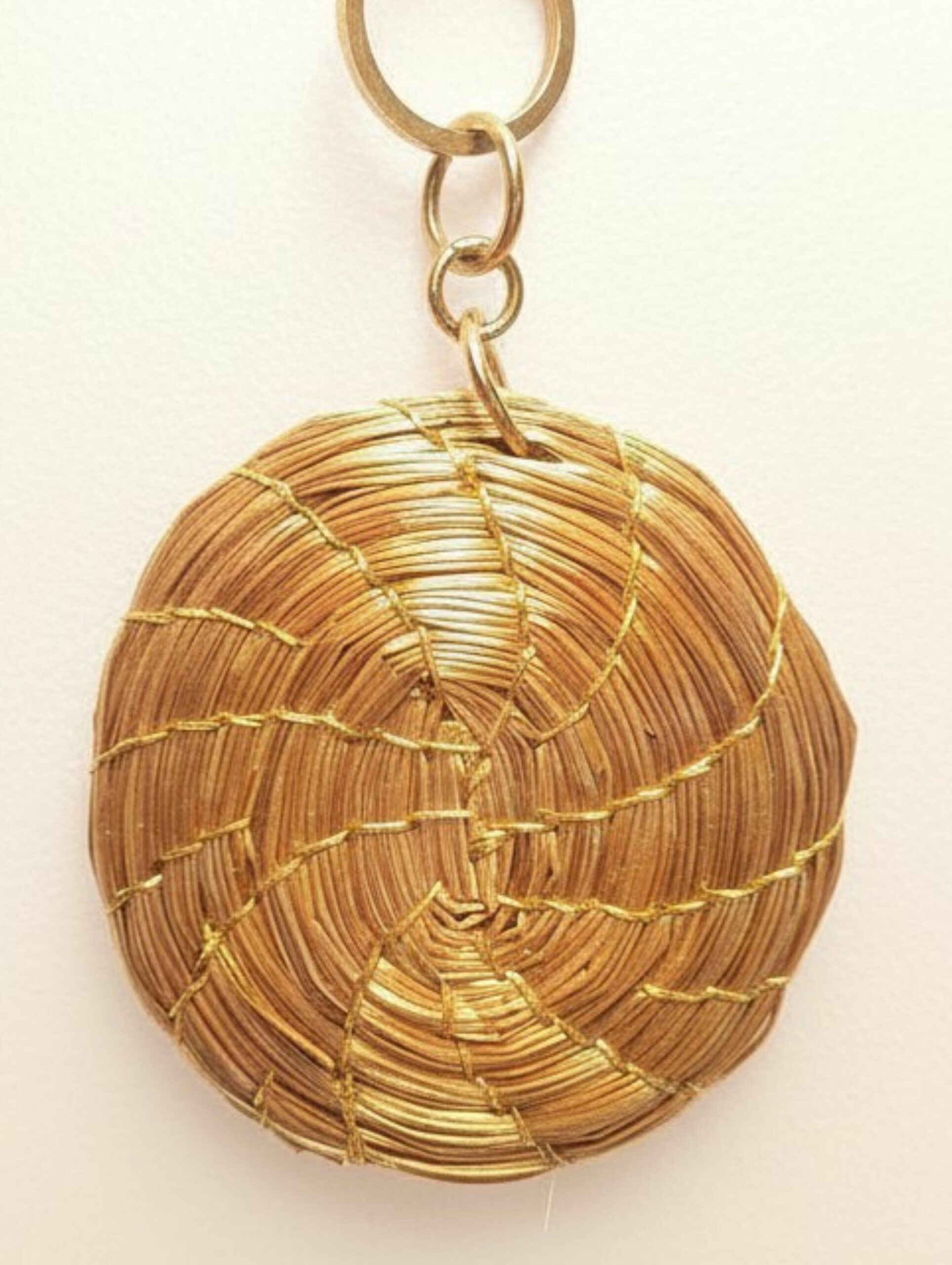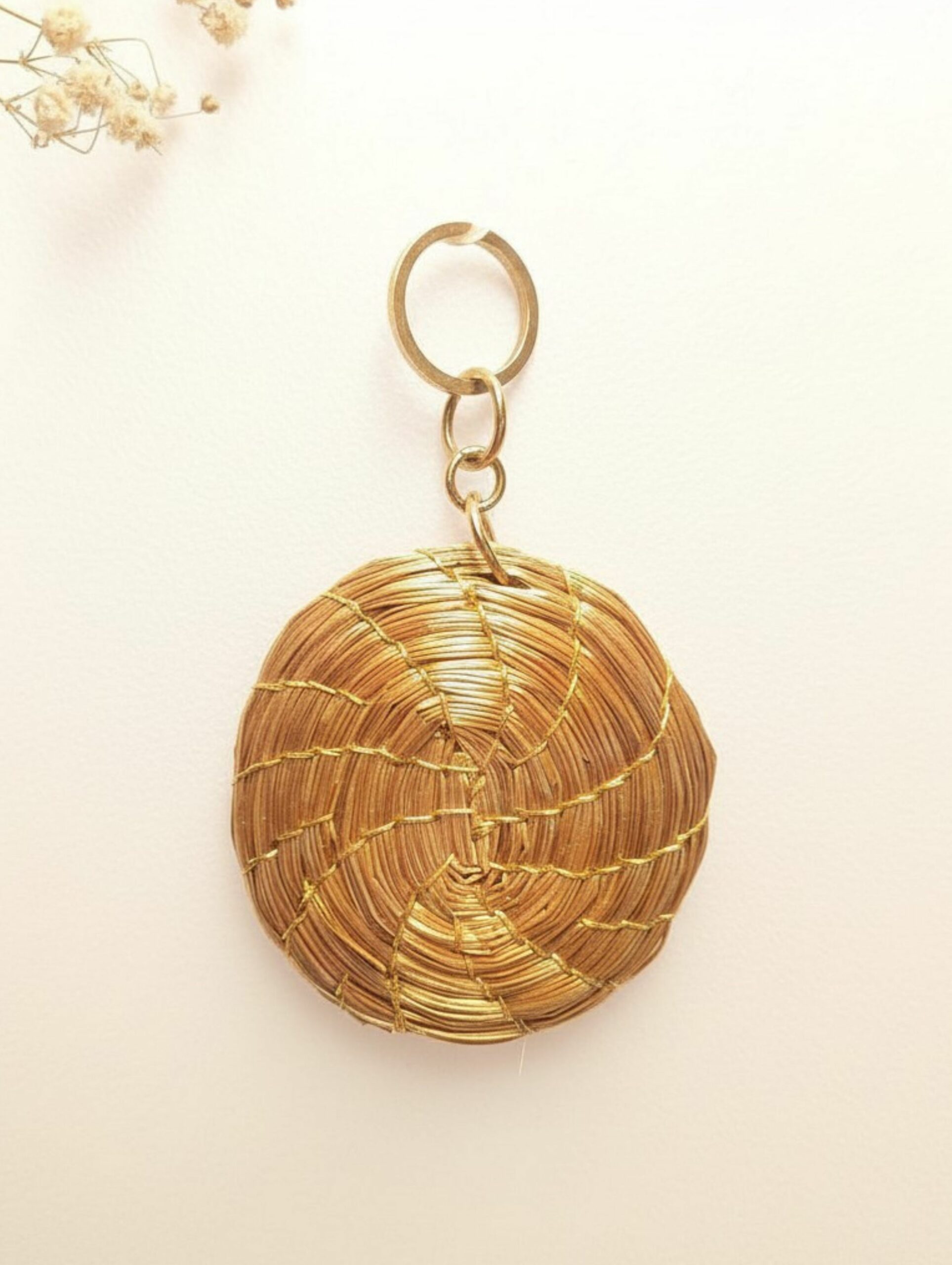 Los Capimix son colgantes multiusos de oro vegetal, elaborados a mano con capim dourado, una planta brasileña conocida por su brillo natural.