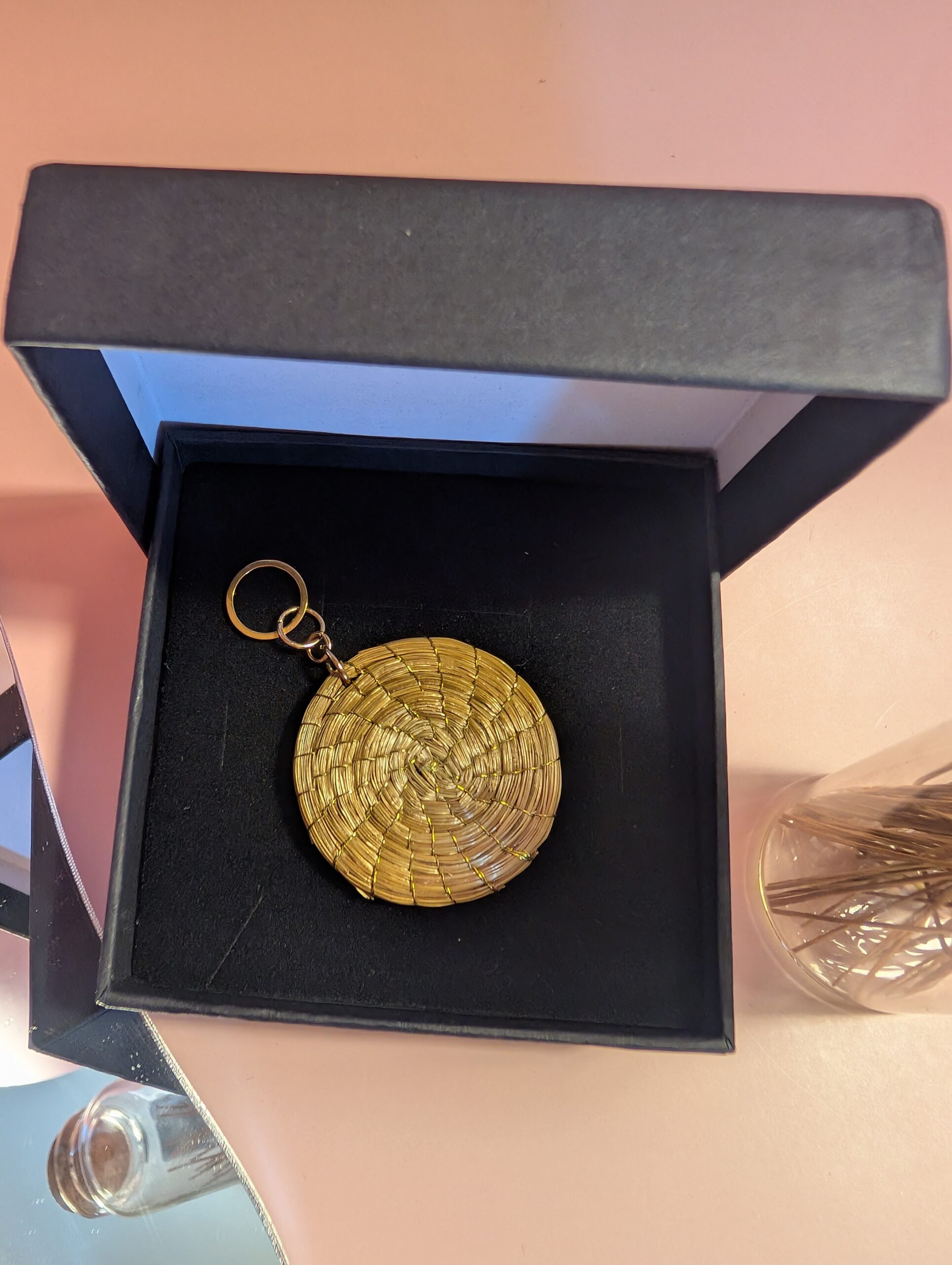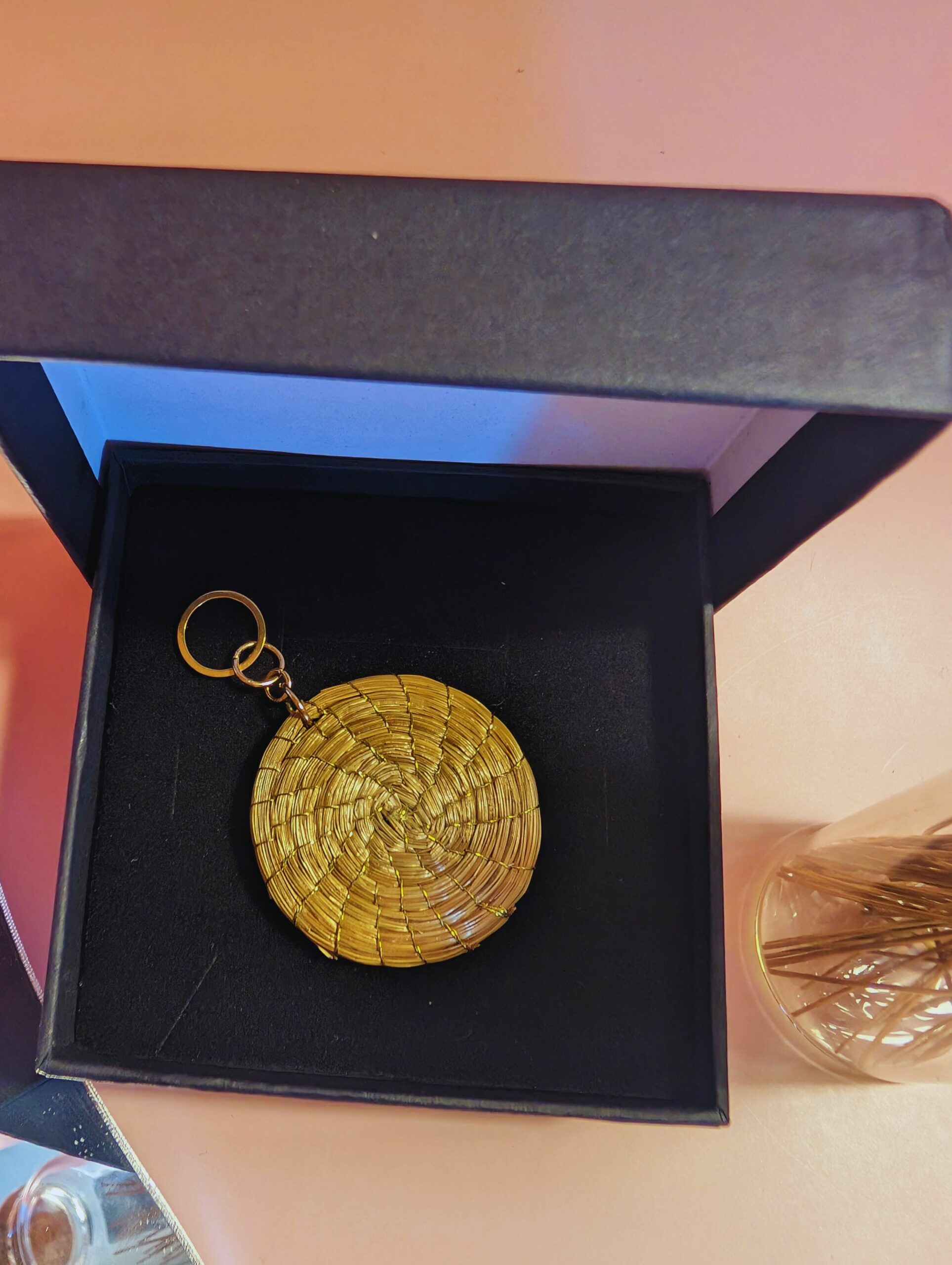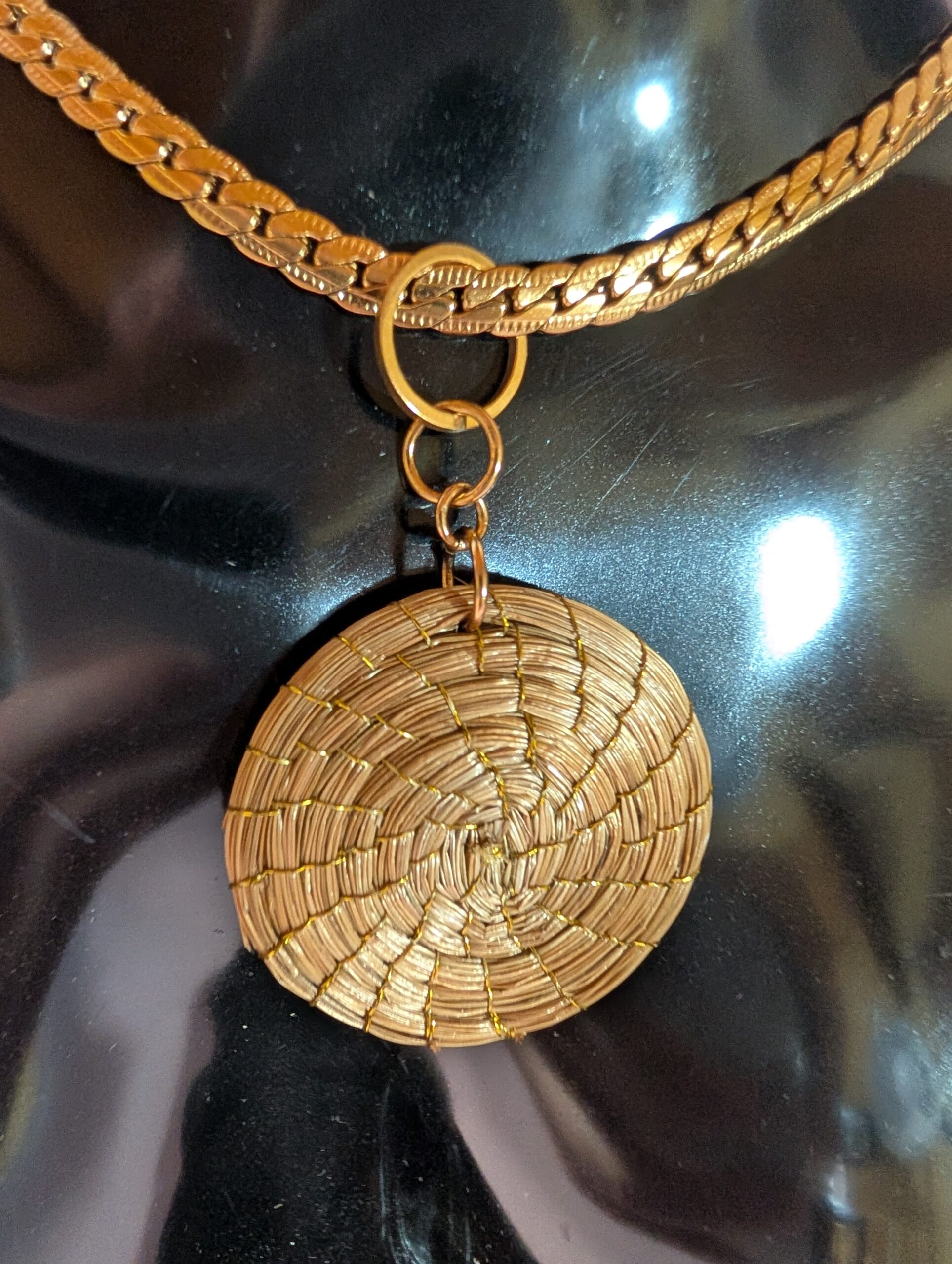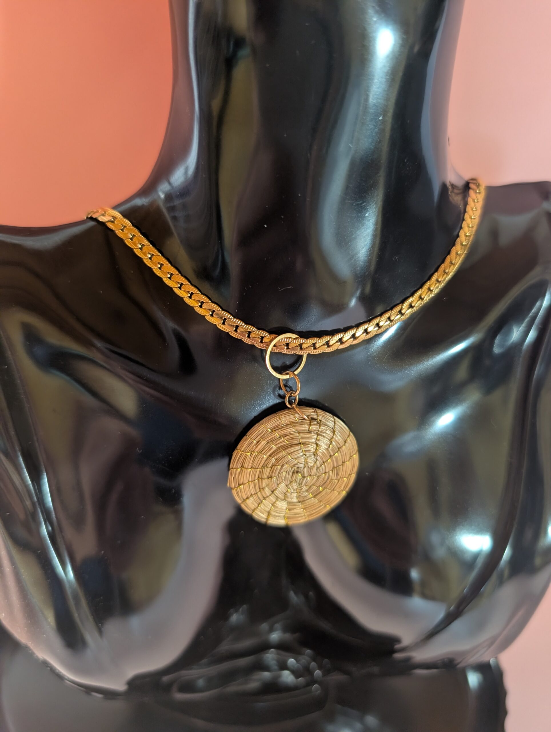 Los Capimix son colgantes multiusos de oro vegetal, elaborados a mano con capim dourado, una planta brasileña conocida por su brillo natural.