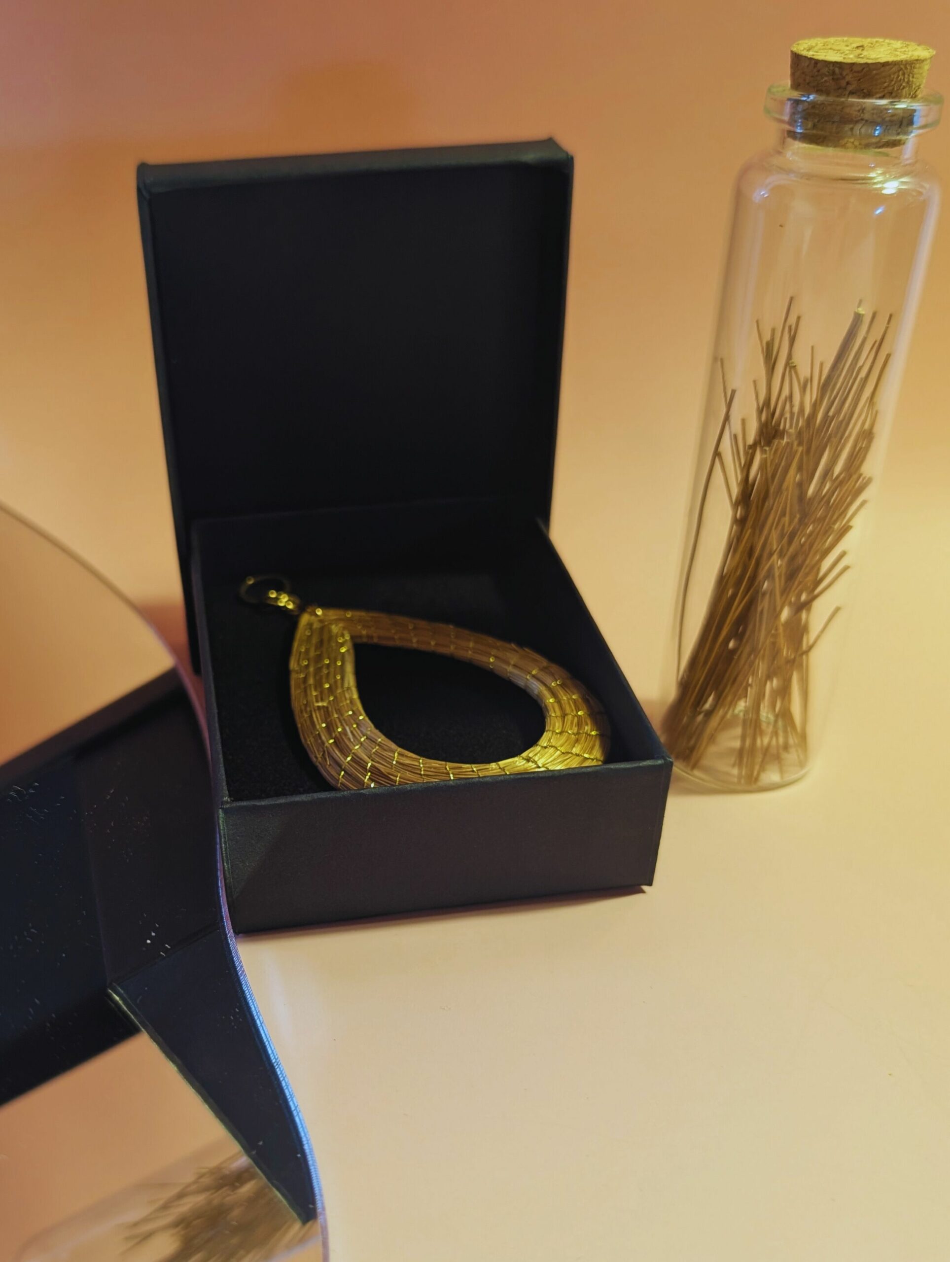 Los Capimix son colgantes multiusos de oro vegetal, elaborados a mano con capim dourado, una planta brasileña conocida por su brillo natural.