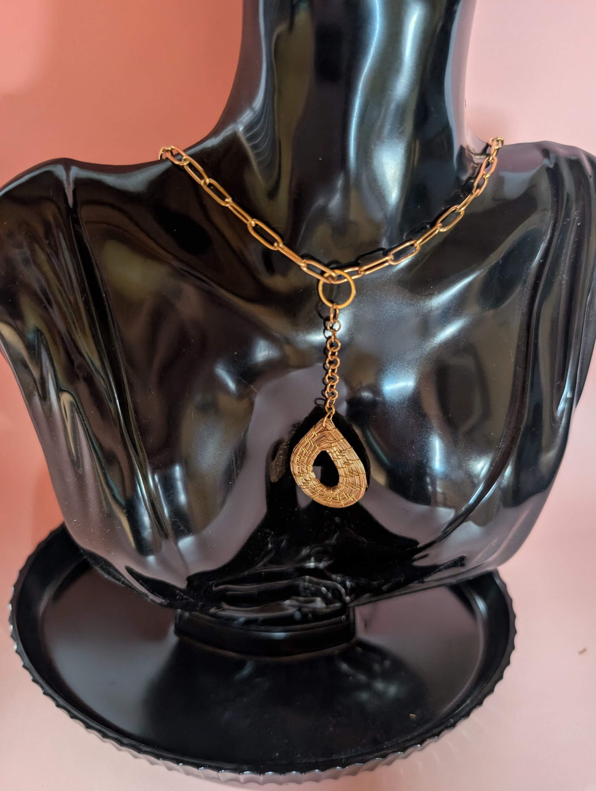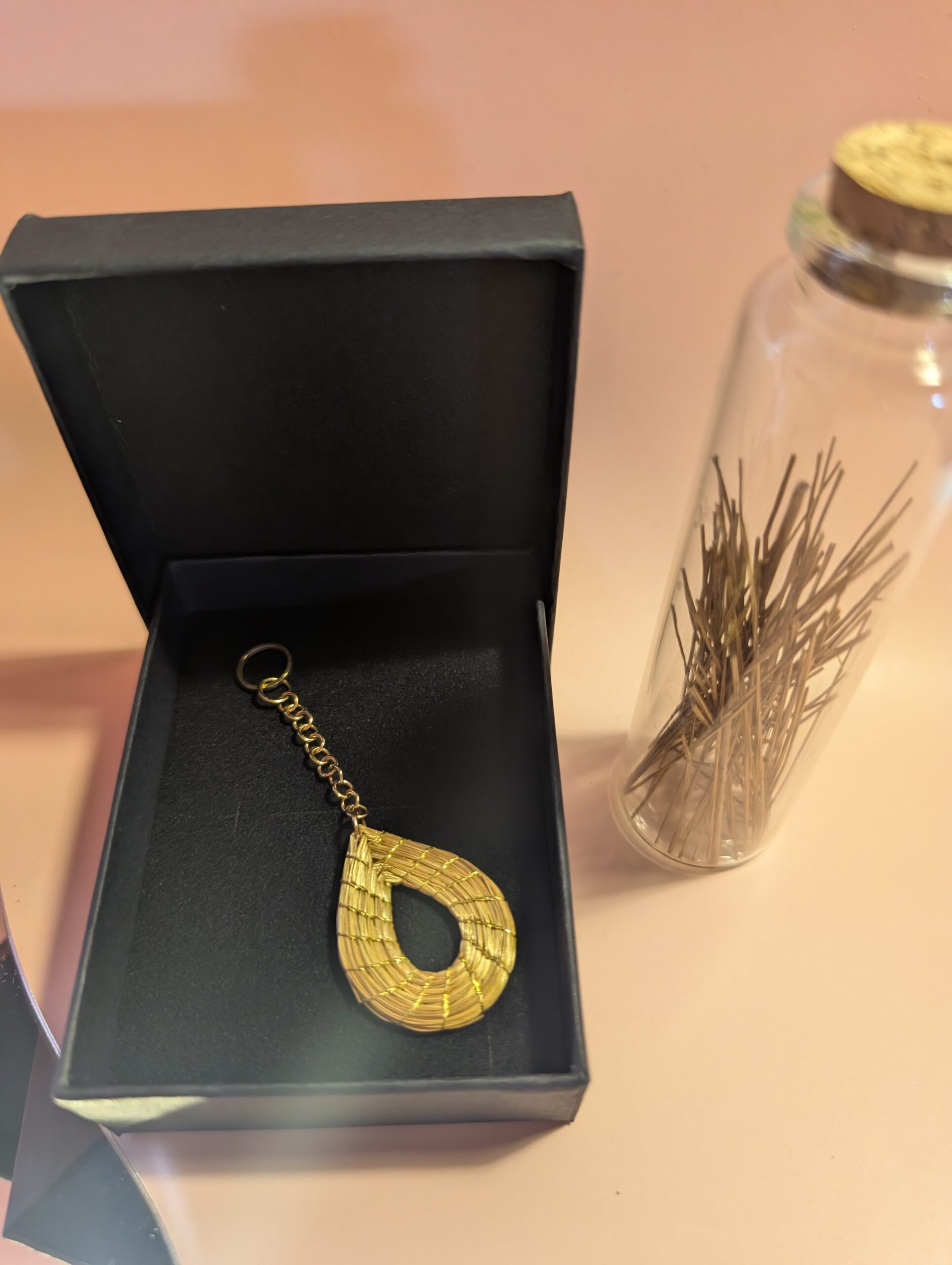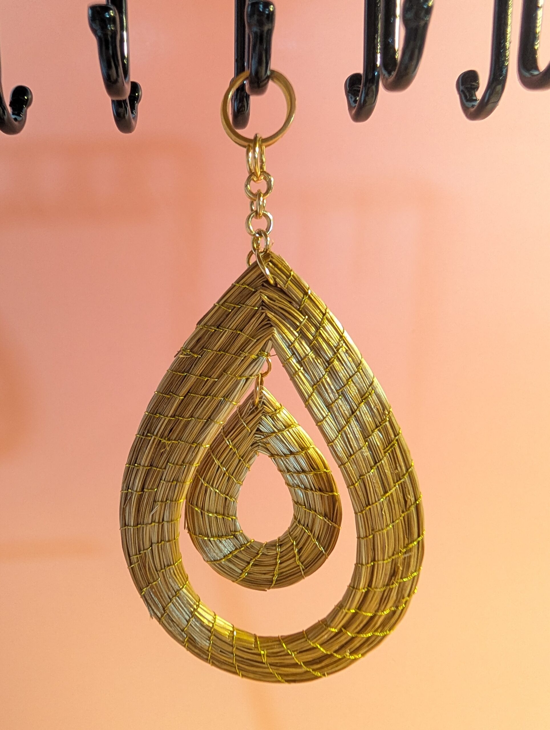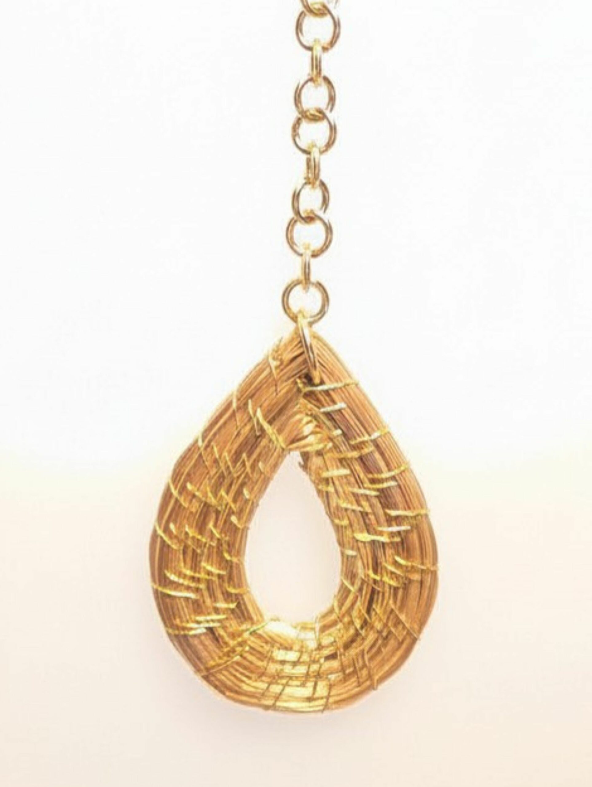 Los Capimix son colgantes multiusos de oro vegetal, elaborados a mano con capim dourado, una planta brasileña conocida por su brillo natural.