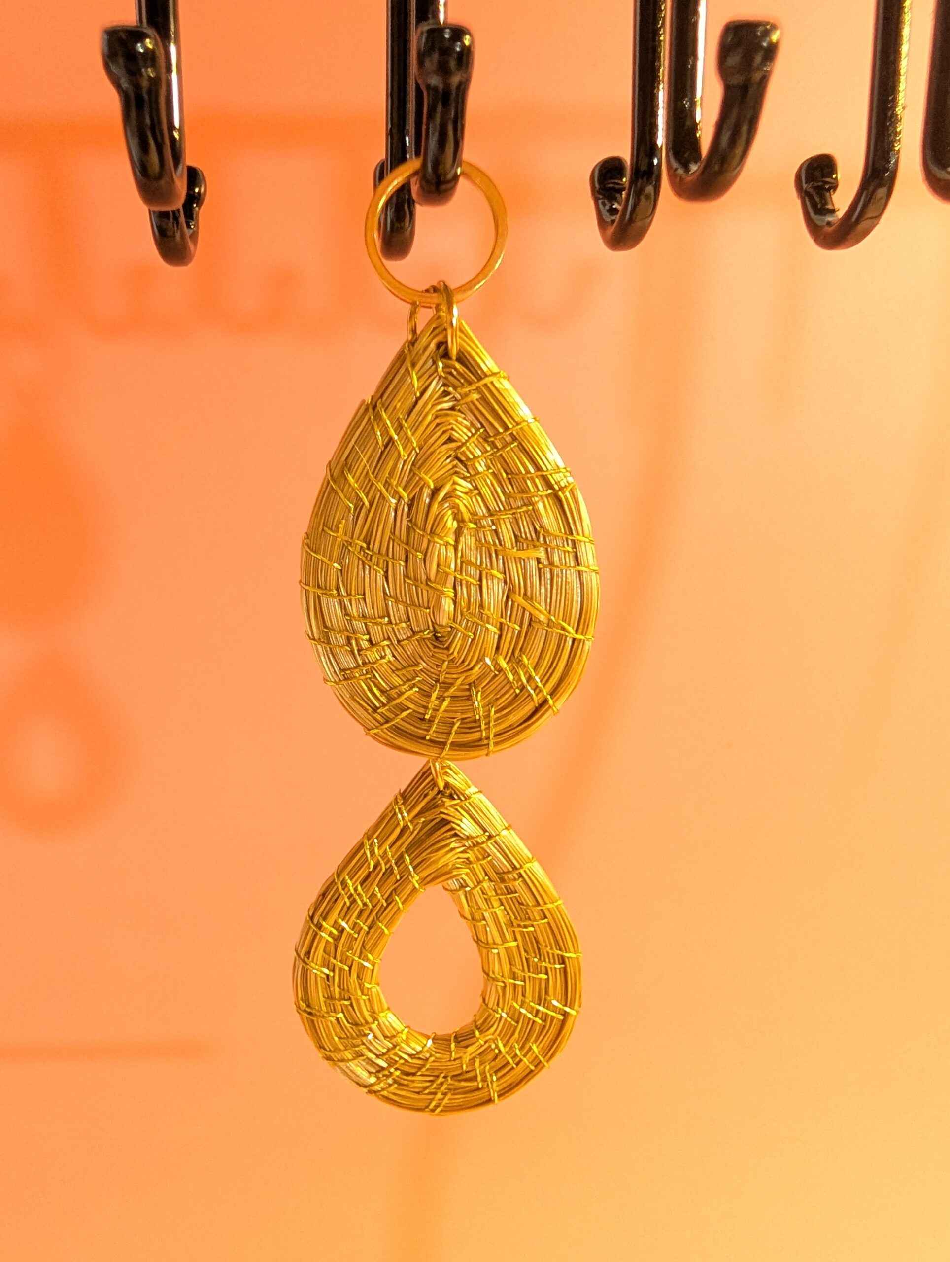 Son colgantes dorados de capim dorado, el oro vegetal brasileño. Joyería natural hecha 100% a mano con la famosa hierba dorada (Brasil).