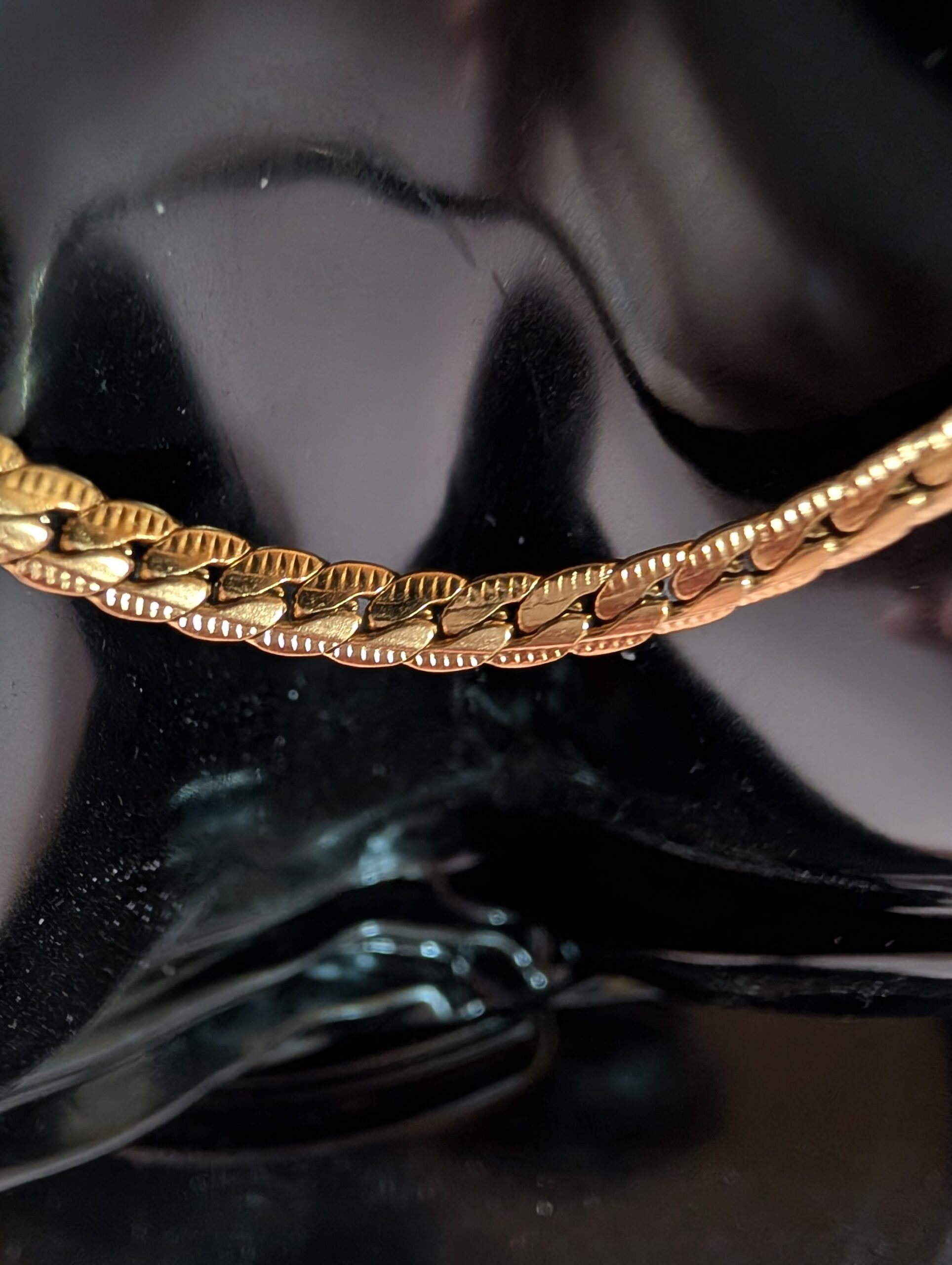 Detalles adicionales del Collar gargantilla Eslabón Cola de topo en acero inoxidable dorado 316L: