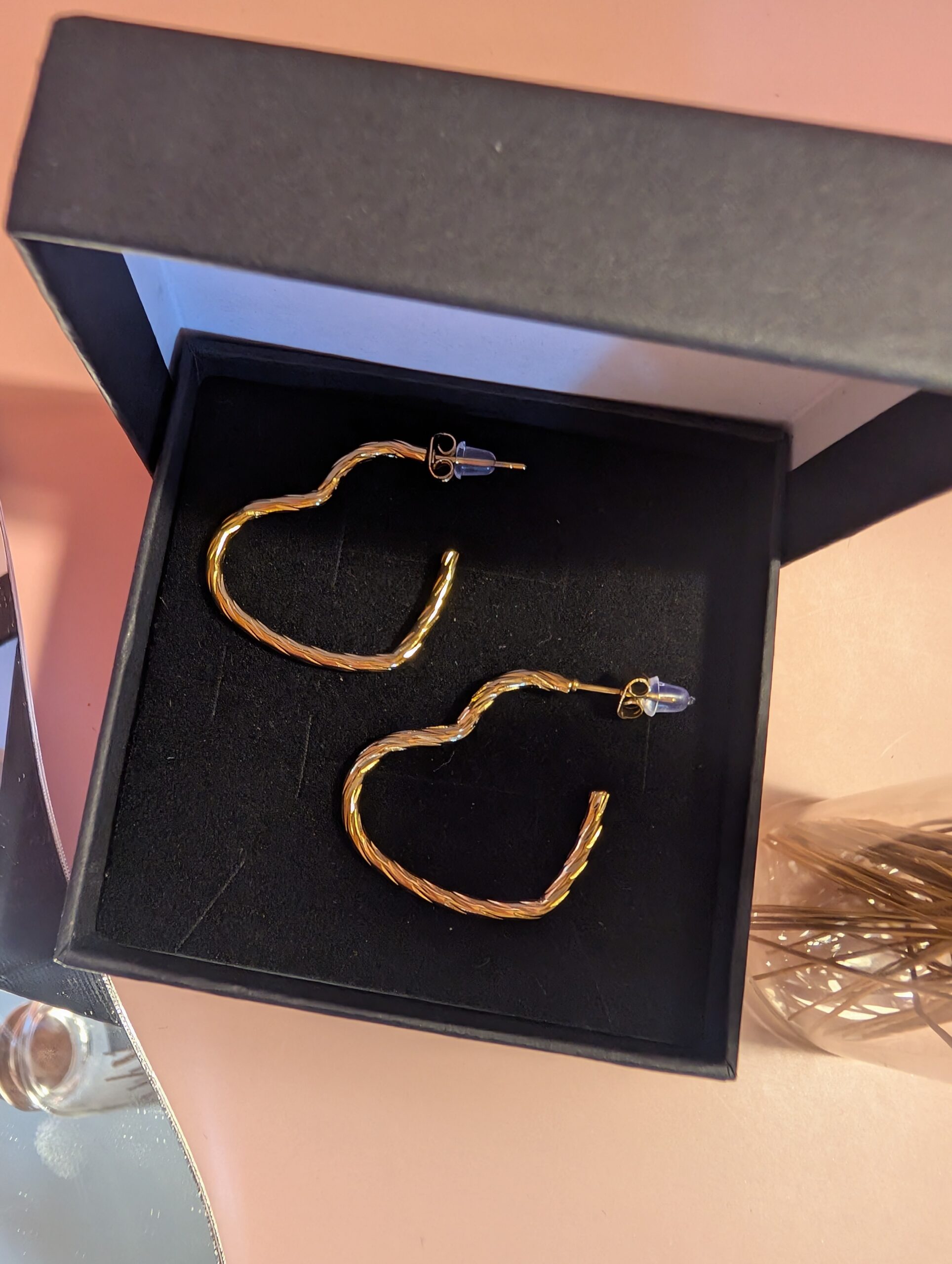 Detalles adicionales de los pendientes Corazón en acero inoxidable dorado 316L: