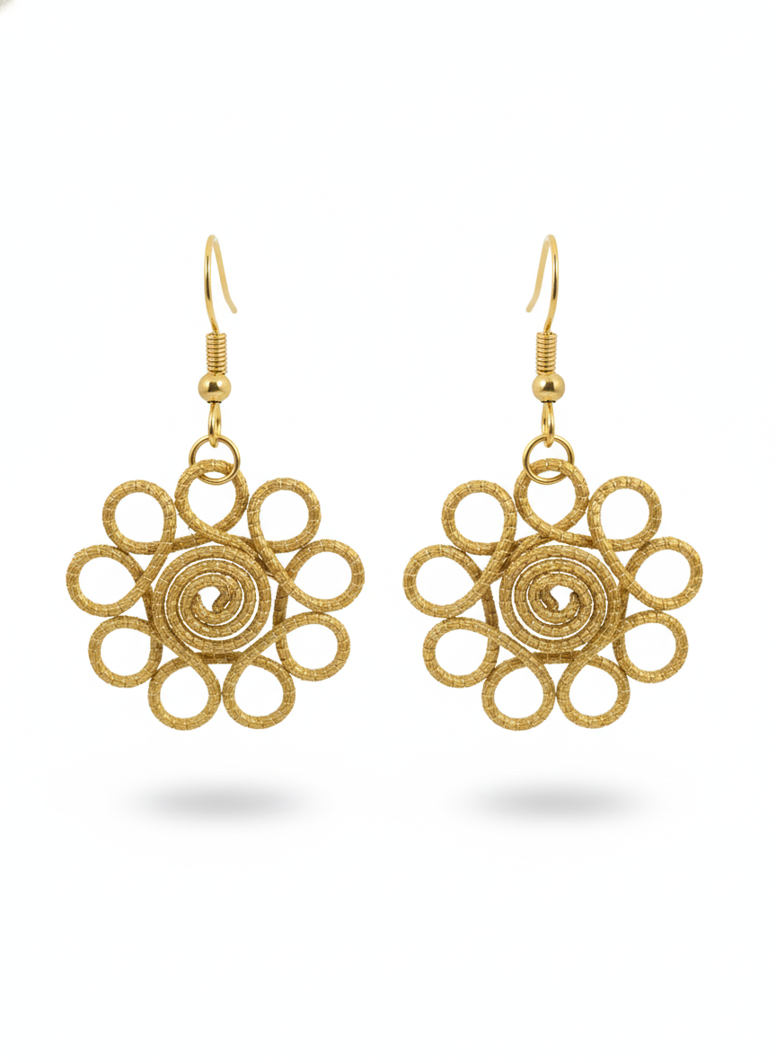 Son pendientes dorados de capim dorado, el oro vegetal brasileño. Joyería natural hecha 100% a mano con la famosa hierba dorada (Brasil).