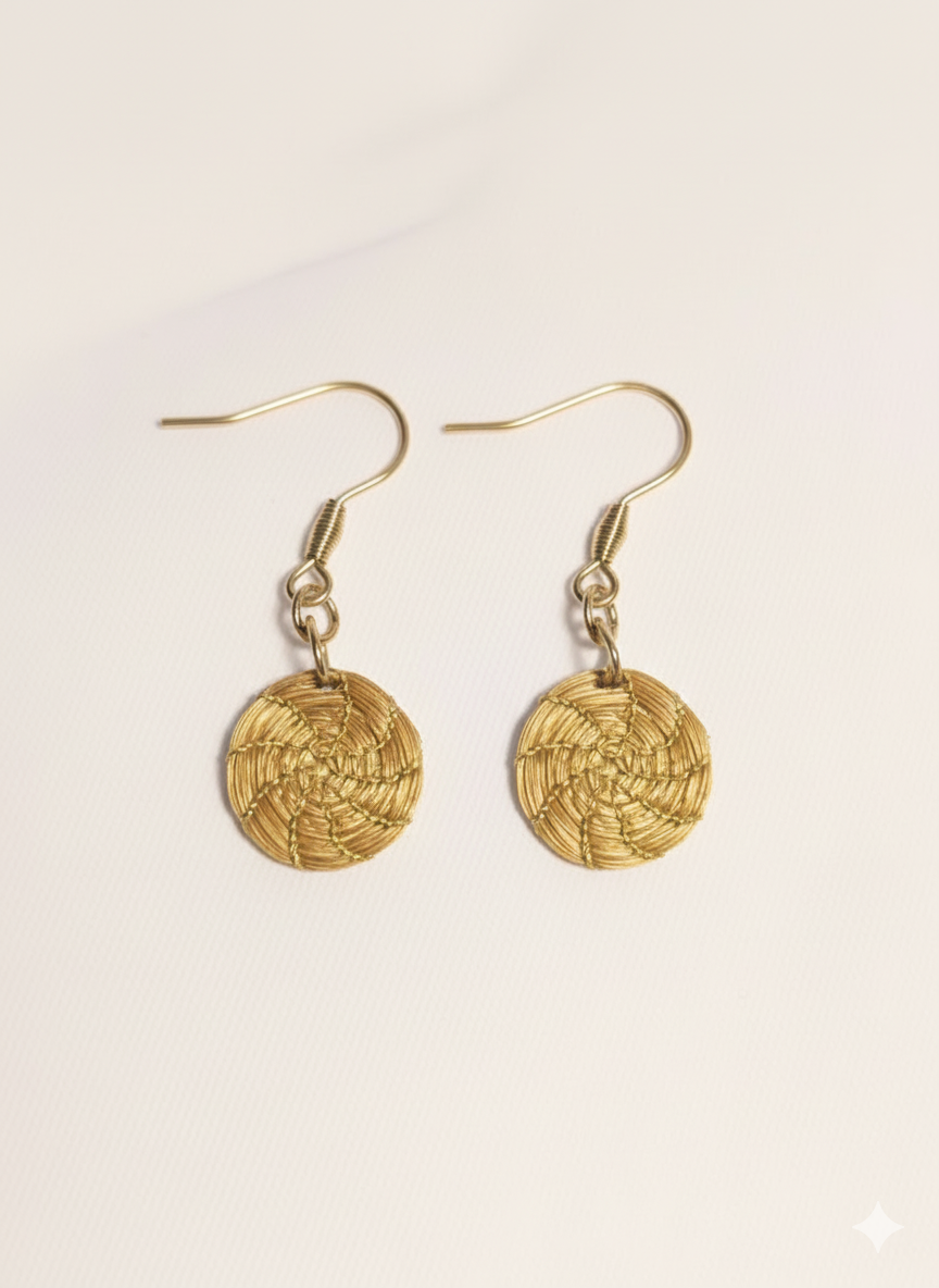 Son pendientes dorados de capim dorado, el oro vegetal brasileño. Joyería natural hecha 100% a mano con la famosa hierba dorada (Brasil).